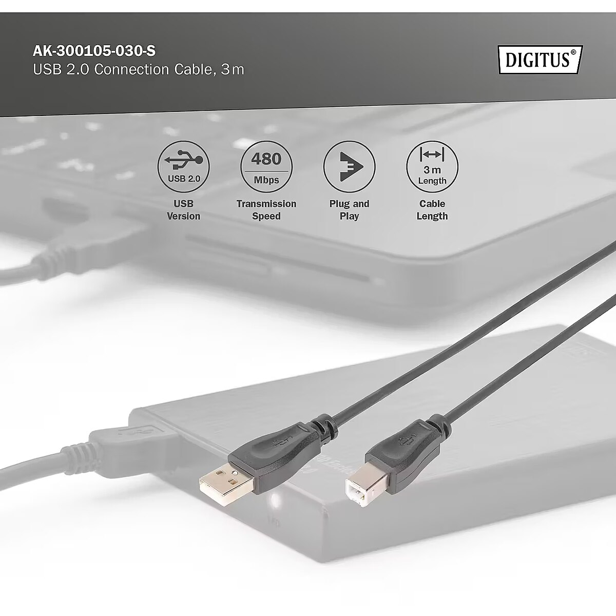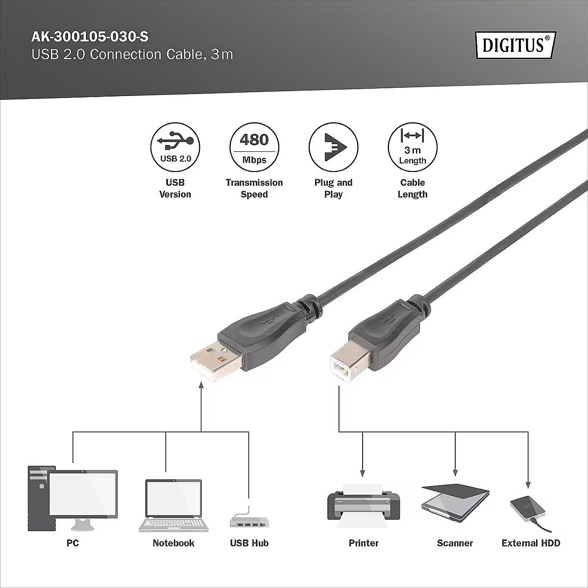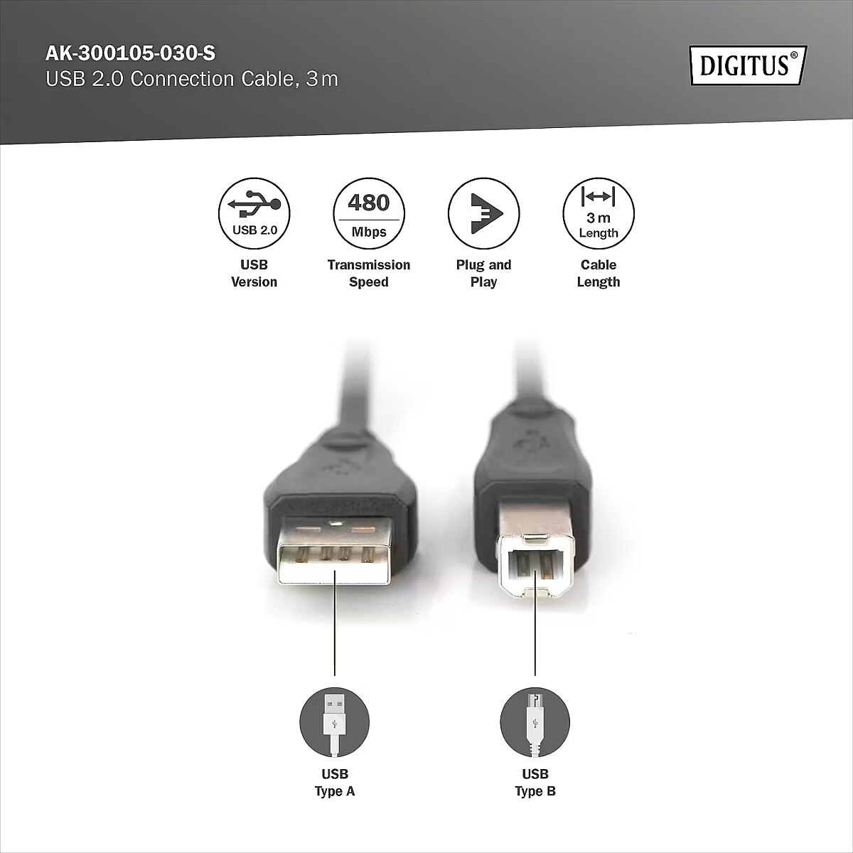 Name - Digitus | USB 2.0 Connection Cable | AK-300105-030-S
