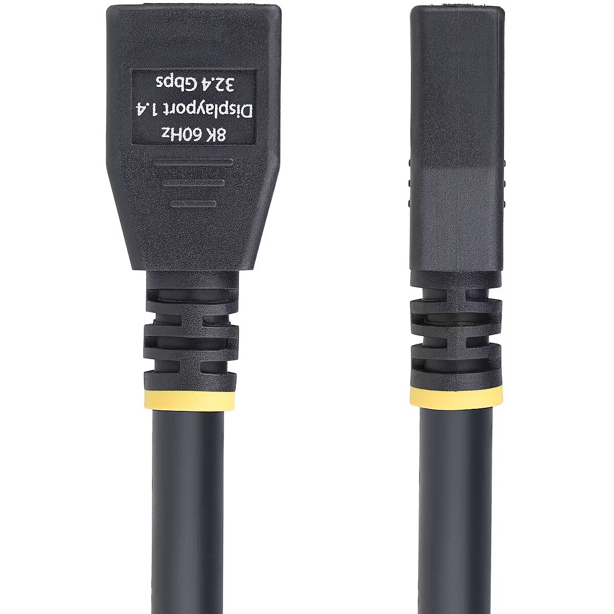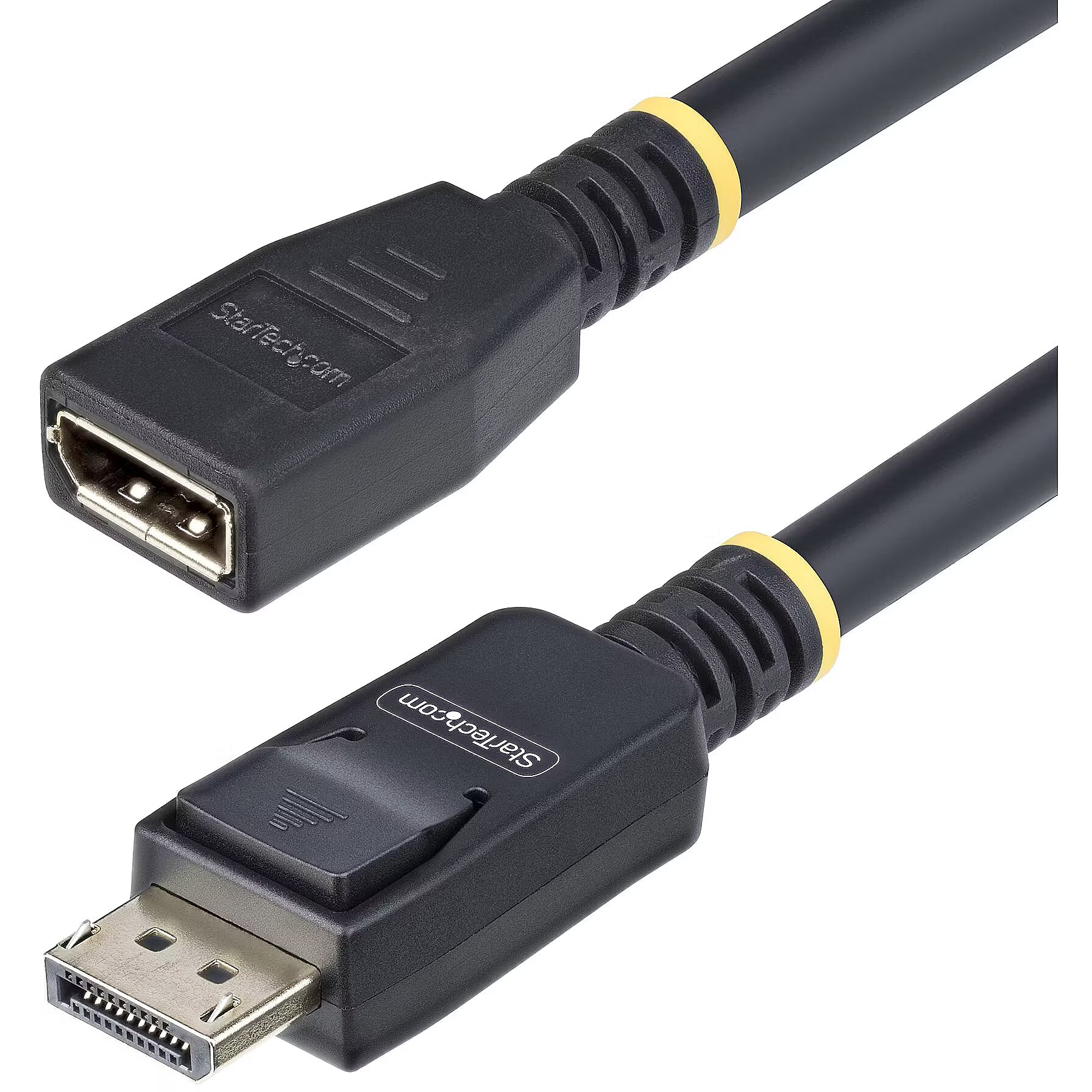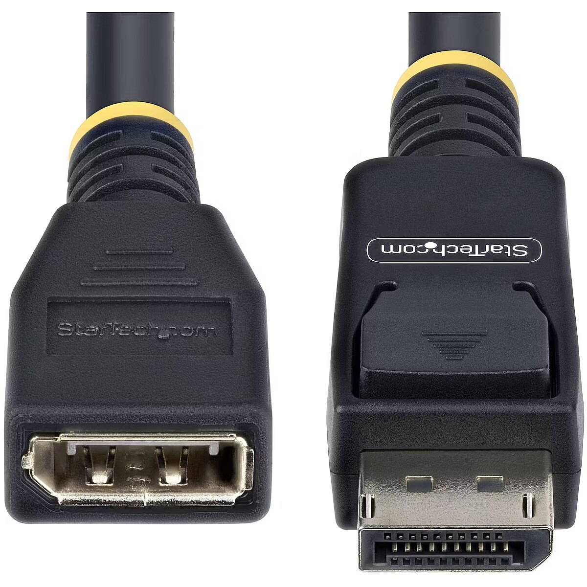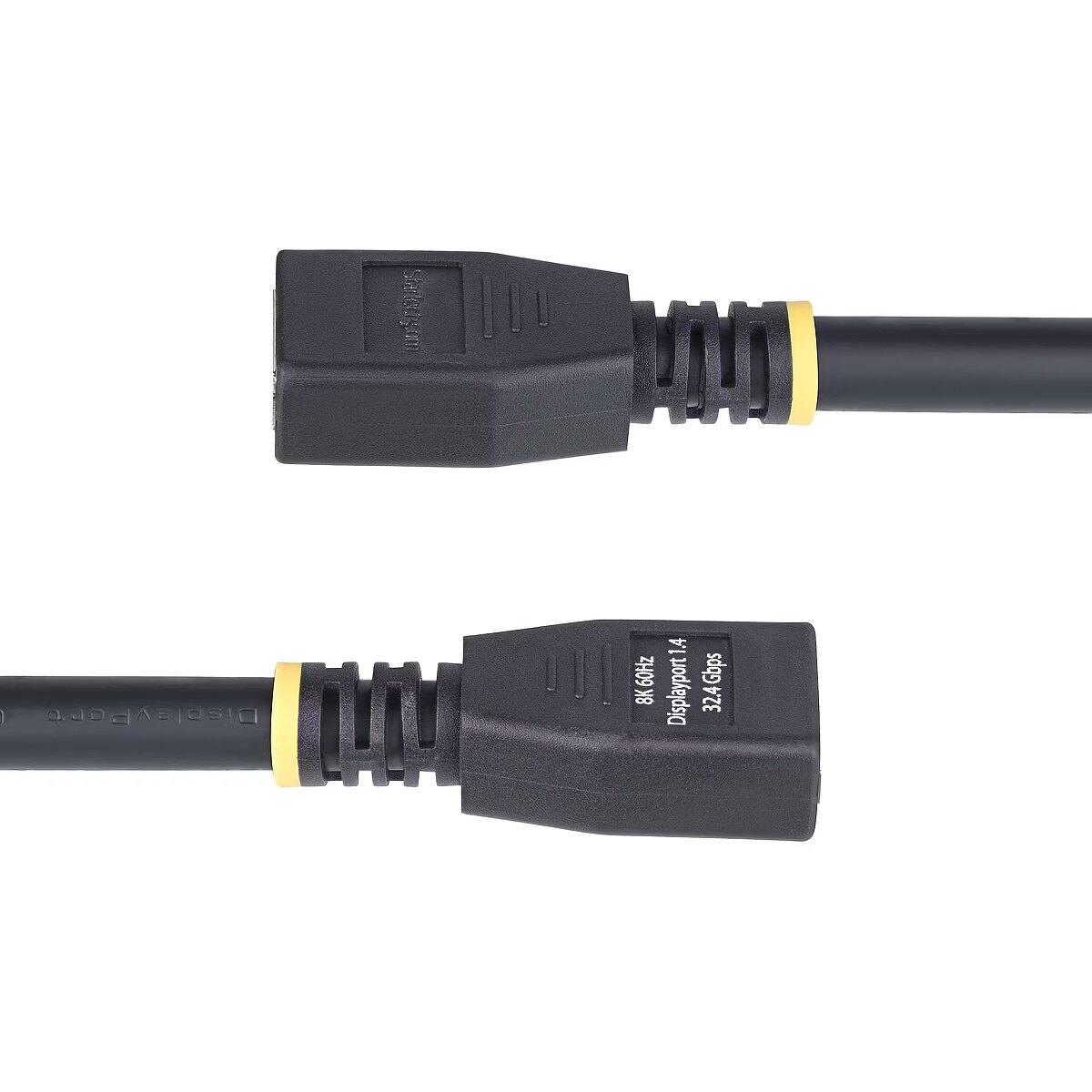 LongDesc - Extend a DisplayPort 1.4 connection or safeguard against port/connector strainThis high quality DisplayPort 1.4 Extension Cable provides extra reach for greater setup versatility, and reduces wear and tear of the DP port on your monitor or other devices. The connector markings enable quick visual identification, distinguishing this cable from other similar-looking or unmarked DisplayPort cables. Eliminate guesswork and always choose the appropriate cable to support full DP 1.4 performance.Full DisplayPort CapabilityThis male-to-female DisplayPort extension cable supports all DisplayPort 1.4 features:• Resolutions up to 8K 60Hz or 4K 144Hz• High speeds with a bandwidth of up to 32.4Gbps• Multi-Stream Transport (MST) for daisy-chaining multiple monitors• High Dynamic Range (HDR) for higher contrast ratio and vivid colors• Crystal-clear sound with up to 32 digital audio channelsThis DisplayPort extension cable is backwards compatible with earlier versions of DisplayPort, ensuring seamless integration with existing DisplayPort devices.The StarTech.com Advantage