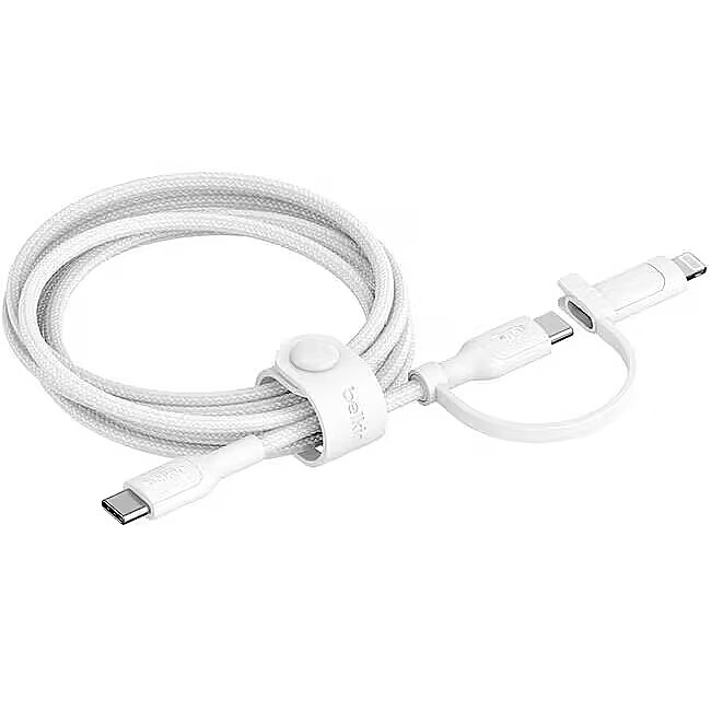 Do tego kabla ładującego 2 w 1 dołączony jest silikonowy pasek, który pozwala na schludne owinięcie i przechowywanie kabla bez obawy o jego splątanie.
