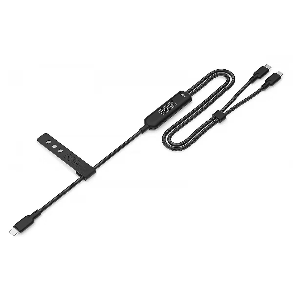 Description - With an output of up to 140W (Power Delivery 3.1), the Digitus USB-C 2-in-1 charging cable reliably and quickly powers even power-hungry notebooks like the MacBook Pro. You can simultaneously charge your smartphone or tabletall with a single cable. Thanks to intelligent charging distribution, the cable automatically adjusts to the requirements of the connected devices. This prevents overcharging and protects the device's lifespan. The durable nylon fabric ensures long life, even with everyday use. With a practical 1.8m length and a cable loop, the cable provides optimal freedom of movementat home, in the office, or on the go. 2-in-1 charging: two USB-C plugs in one cable to charge two devices simultaneously Ultra-fast: up to 140W Power Delivery - ideal for powerful notebooks Intelligent charge distribution: automatically adjusts power to connected devices Flexible and versatile: 1.8m length for greater freedom of movement while working or charging Durable and flexible: nylon braided cable with PVC core for maximum durability Safe charging: protection against overheating, overcharging, and short circuits Cable replacement on the go: saves space and reduces cable clutter - ideal for mobile use Universal compatibility with USB-C PD devices: ideal for smartphones, tablets, notebooks, and other USB-C devices