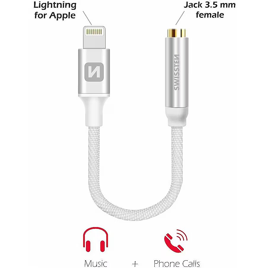 title_en - Swissten Lightning to Jack 3.5mm Audio Adapter for iPhone and iPad 15 cm