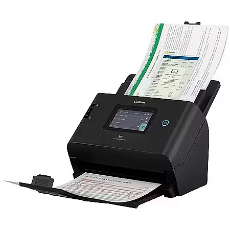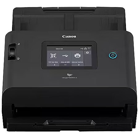 LongDesc - Canon imageFORMULA DR-S350NWSimplify scanning with large colour touch screen operation and flexible connectivity options including driverless and PC-less operation.A powerful tool for hybrid workingSupport hybrid working with a powerful and easy-to-use scanner. Connect easily to other devices and enhance efficiency across various working environments while benefiting from 100ipm scan speed.