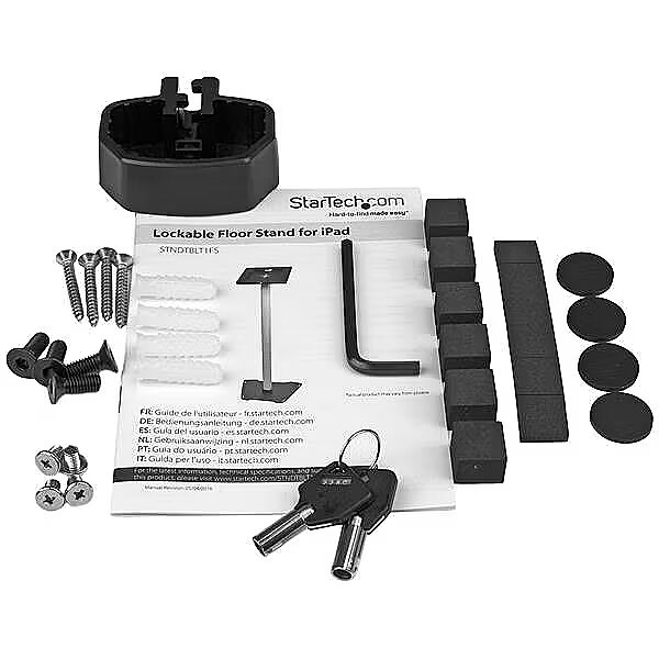 LongDesc - Užrakinamas planšetinių kompiuterių stovas | 9,7" planšetiniams kompiuteriams | Metalinė konstrukcija | Fiksuotas aukštisŠiuo saugiu planšetinių kompiuterių grindų stovu galima įrengti planšetinį kompiuterį kaip interaktyvų rinkodaros kioską ar produkto ekraną. Jis tinka "Apple iPad", "iPad Air" ar kitoms 9,7 colių planšetėms.Šis TAA reikalavimus atitinkantis gaminys atitinka JAV federalinio prekybos susitarimų įstatymo (TAA) reikalavimus, todėl jį galima įsigyti pagal vyriausybės GSA sąrašą.Suteikite klientams patrauklų ekranąPastatykite vieną planšetinį kompiuterį vestibiulyje arba naudokite kelis stendus visoje organizacijoje ar parodoje, kad pasiektumėte maksimalų matomumą ir poveikį. Stendą galite naudoti tokioms programoms, kaip:- Suteikti klientams tiesioginę prieigą prie naujos informacijos apie gaminius- Pasveikinti lankytojus- Prijungti klientus prie savo programėlės, kad pagerintumėte vartotojo patirtįPagrindinis mygtukas yra uždengtas, todėl galite nukreipti vartotojus į konkrečią informaciją ar programėles ir neleisti jiems laisvai naršyti po planšetinį kompiuterį.Saugus planšetinis kompiuterisSaugus planšetinio kompiuterio stovas turi užrakinamą laikiklį, kuris padeda apsaugoti planšetinį kompiuterį nuo praradimo ar sugadinimo. Be to, plieninio ir aliuminio stovo pagrindą galite įsukti į grindis ir taip sukurti fiksuotą laikiklį.Sukurkite patrauklų ekranąSukurkite įspūdingą planšetinio kompiuterio ekrano bloką - vertikalioje arba horizontalioje padėtyje. Stovo fiksuotas aukštis yra maždaug 42 colių (1060 mm), jame įmontuotas kabelių tvarkymas, užtikrinantis tvarkingą ekraną. Jei norite maitinti planšetinį kompiuterį, nepastebimai praveskite planšetinio kompiuterio įkrovimo laidą pro stulpelio formos stovą.TaA reikalavimus atitinkančiam STNDTBLT1FS suteikiama 3 metų "StarTech.com" garantija ir nemokamas techninis aptarnavimas visą gyvenimą."StarTech.com" pranašumas