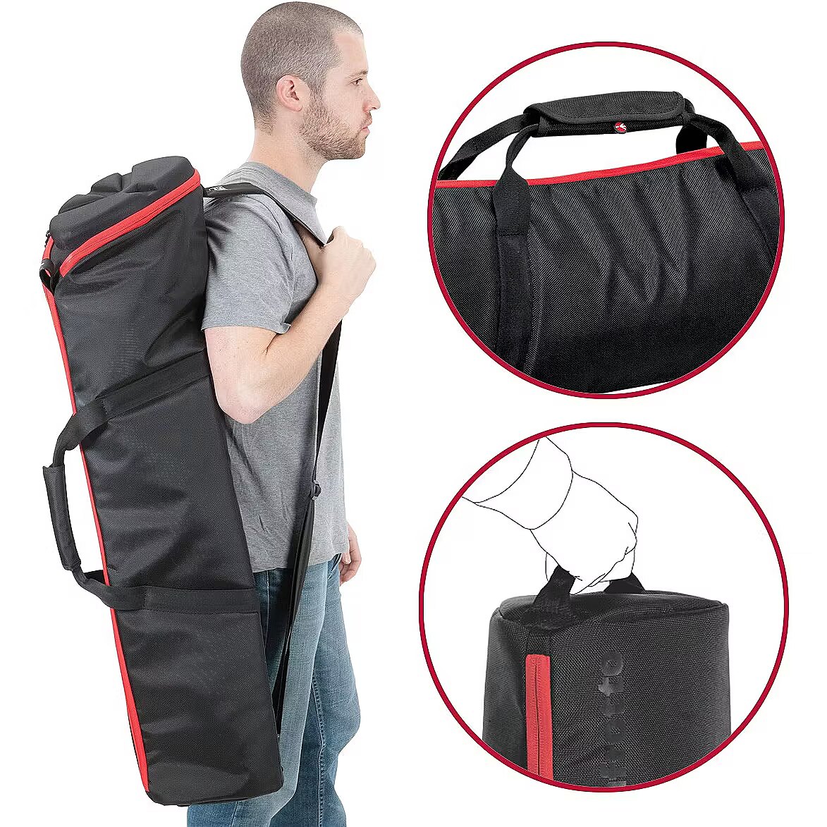 description_et - Krepšys gali apsaugoti iki 85 cm ilgio trikojį su galvute transportavimo padėtyje. Dėl asimetriškos formos trikojį galima pritvirtinti nenuimant trikojo galvutės. Krepšys turi užtrauktuką per visą ilgį ir iš dalies gale. Be to, krepšyje yra vidinė kišenė, kurioje galima laikyti, pavyzdžiui, vaizdo kameros rankenas. Jis turi patogų dirželį per petį, kad būtų patogu nešiotis. Išoriniai matmenys: 900 × ø200 mm Vidiniai matmenys: 850 × ø180 mm Svoris: 970 g