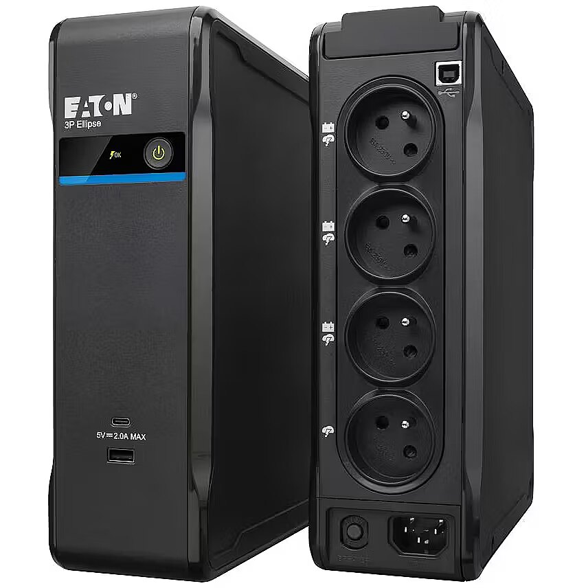Aprašymas - 3P Ellipse UPS 3P Ellipse UPS yra naujausias "Eaton" elektros energijos apsaugos sprendimų portfelio papildymas. Elegantiškas, patrauklus dizainas ir beveik tylus šio kompaktiško UPS veikimas lemia unikalią patirtį ir naudą naudojant nepertraukiamo maitinimo šaltinį tiek namuose, tiek mažose įmonėse. Daugiau galios Naudokitės iki 12 % didesne galia nei jo pirmtakas ("Ellipse ECO") ir iki 15-20 minučių ilgesniu atsarginio veikimo laiku tipinėse srityse, kad galėtumėte efektyviai ir saugiai susidoroti su elektros energijos tiekimo pertrūkiais. Jums nebereikia naudoti papildomų adapterių. Prijunkite įrangą tiesiai prie UPS esančių FR arba "Schuko" lizdų. Tai didžiulis patobulinimas, palyginti su maitinimo šaltiniais, turinčiais tik IEC lizdus. Užtikrinkite savo vertingai įrangai aukščiausio lygio apsaugą dėl įmontuotos apsaugos nuo viršįtampių, atitinkančios griežtą IEC 61643-11 standartą. Modernus dizainas Klasikinis, tačiau šiuolaikiškas "3P Ellipse" dizainas puikiai derės prie bet kokio interjero: nesvarbu, ar tai būtų darbo kabinetas, ar žaidimų kambarys. Plonas ir siauras korpusas leidžia UPS sklandžiai įsilieti į erdvę, kurioje jis bus pastatytas. UPS "3P Ellipse" gali veikti ant stalo horizontaliai arba vertikaliai, taip pat stove ar ant sienos (su pasirenkamais montavimo priedų rinkiniais). Įkraukite mobiliuosius įrenginius, kai tik to reikia, naudodamiesi USB-A ir USB-C prievadais (USB versijos). Dirbkite, pramogaukite ar ilsėkitės be nereikalingo triukšmo.