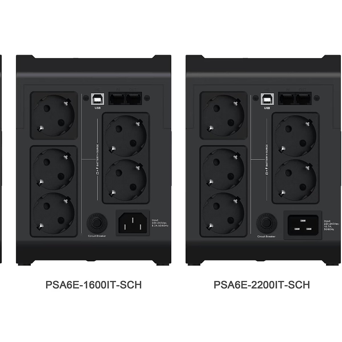 LongProductName - PowerUPS 200 Essential PSA6E-1600IT-SCH, 1600VA/925W, AVR, User-Replaceable Batteries, Battery Backup, 5 Schuko Outlets