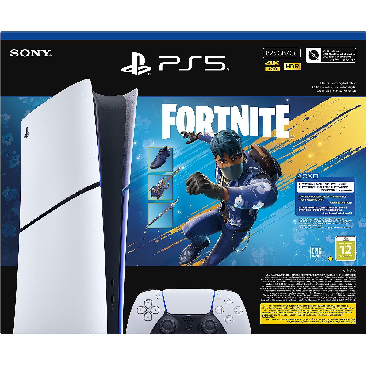 Title - Sony PlayStation 5 (model group - Slim) Digital Edition, Fortnite Flowering Chaos Bundle
