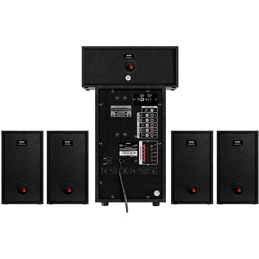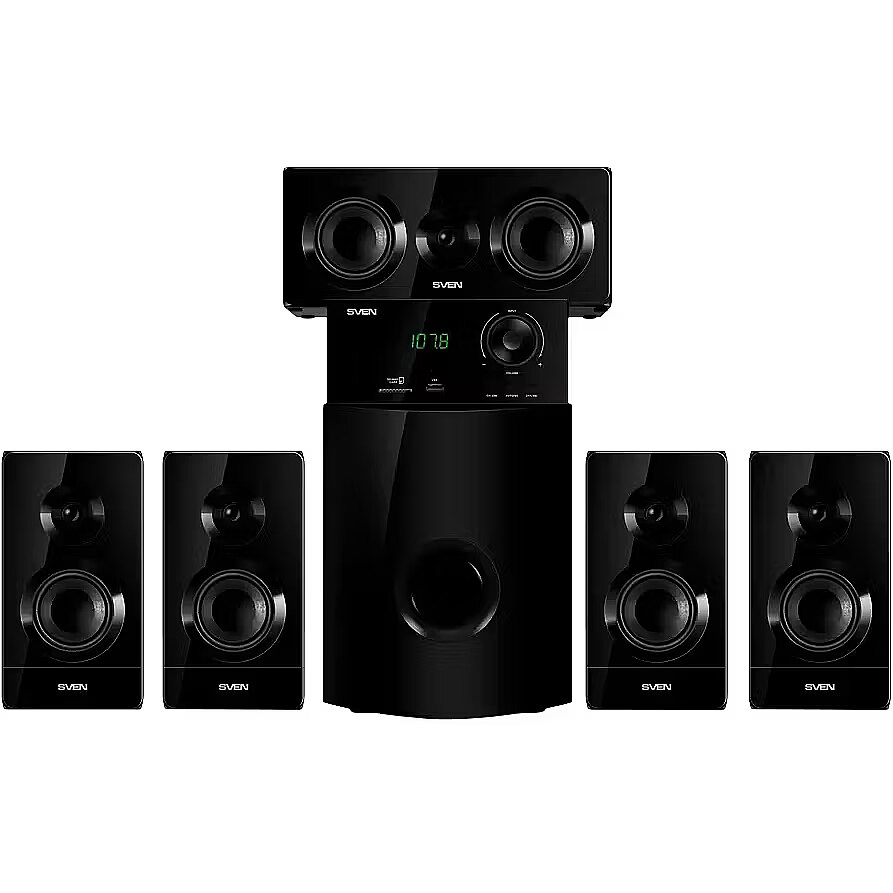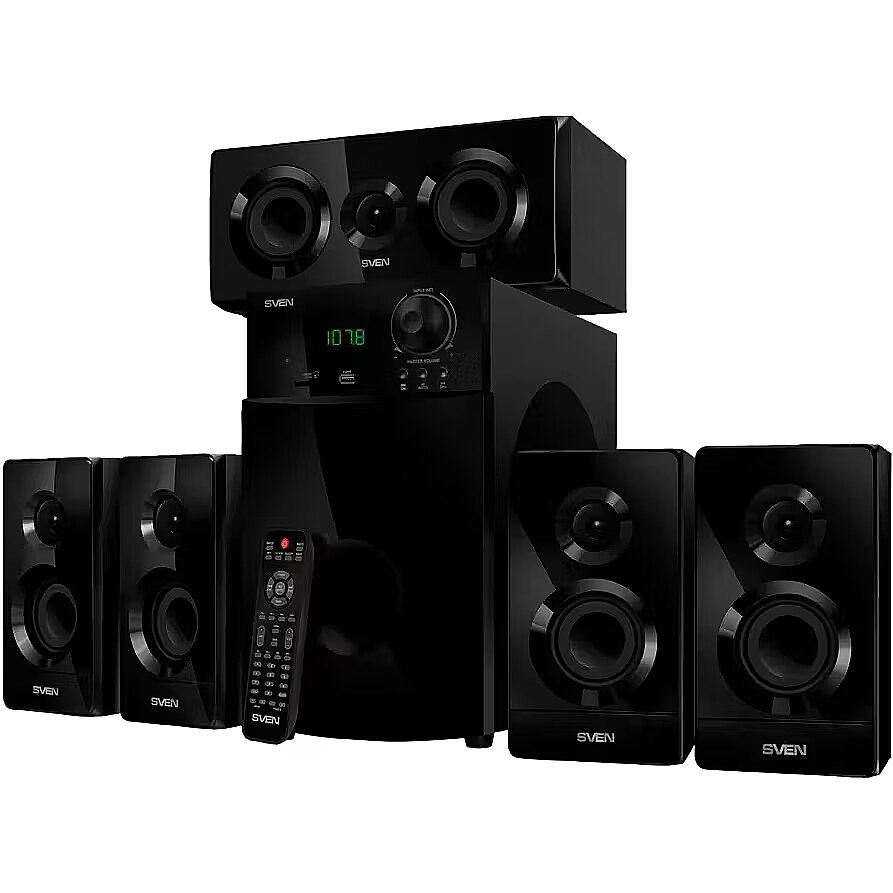 LargeDescHTML - SVEN company has prepared a nice surprise for those who loves watching movies in high quality. The company has released a home theater Bluetooth speaker system. SVEN HT-210 is a great way to have enjoyable time!You no longer have to go to the cinema to fully enjoy the atmosphere of your favorite movie. With SVEN 5.1 speaker system, you will enjoy rich and realistic surround sound at home. Crystal clear high and medium frequencies of the SVEN HT-210 speakers will keep intact the finest details of music you hear, while the 176 mm subwoofer will ensure a truly impressive bass line, which lets you feel the full power of the most sophisticated sound effects. The speakers can be connected to a TV via an optical or coaxial cable input. Transmission of undistorted digital signal provided so efficiently by HT-210 is a guarantee of great impressions inspired by the show.The SVEN HT-210 multifunctional speaker system supports wireless sound communication via the Bluetooth interface, which means that you can play music right from your smartphone or tablet in premium quality. Connecting to the system takes mere seconds and requires no extra efforts.Moreover, SVEN HT-210 features a built-in radio and can play music from USB flash and SD cards. In fact, this is more than just a home theater speaker system. This model of SVEN is a true multimedia entertainment center!The speaker controls are brought to the front panel. The model is equipped with an informative VFD display and a handy remote control. The system components can be arranged both on the floor or the wall, as the satellite speakers have wall mounting fixers.HT-210 is already on sale in retail stores. Watch great movies with a SVEN multichannel speaker system!