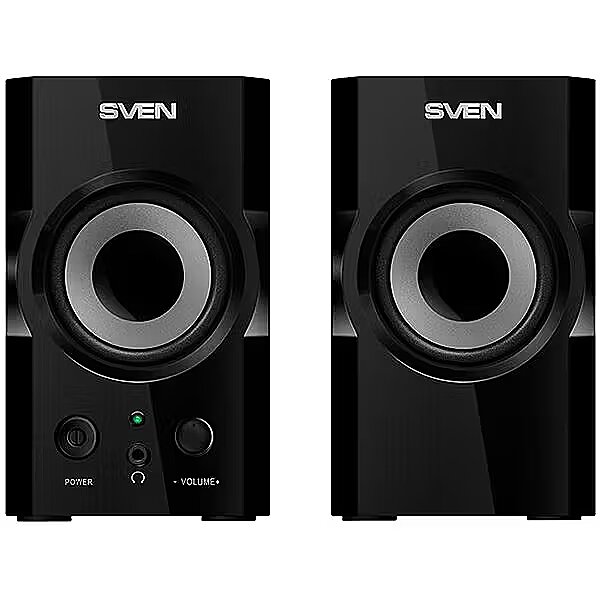 Produkto aprašymas - SVEN SPS-606 2x3W, priekinė ausinių jungtis, priekinis įjungimo mygtukas ir garsumo reguliatorius