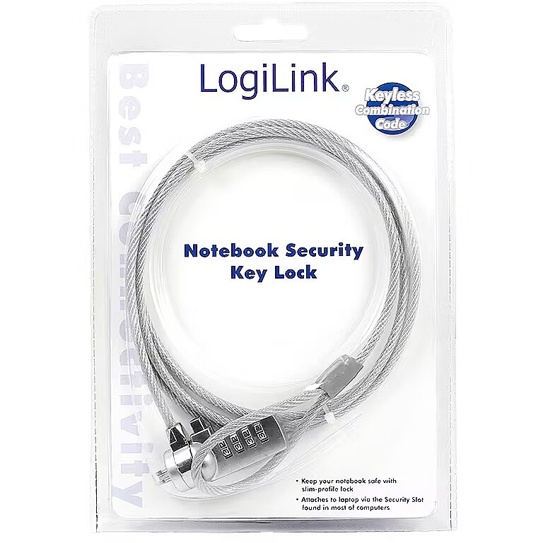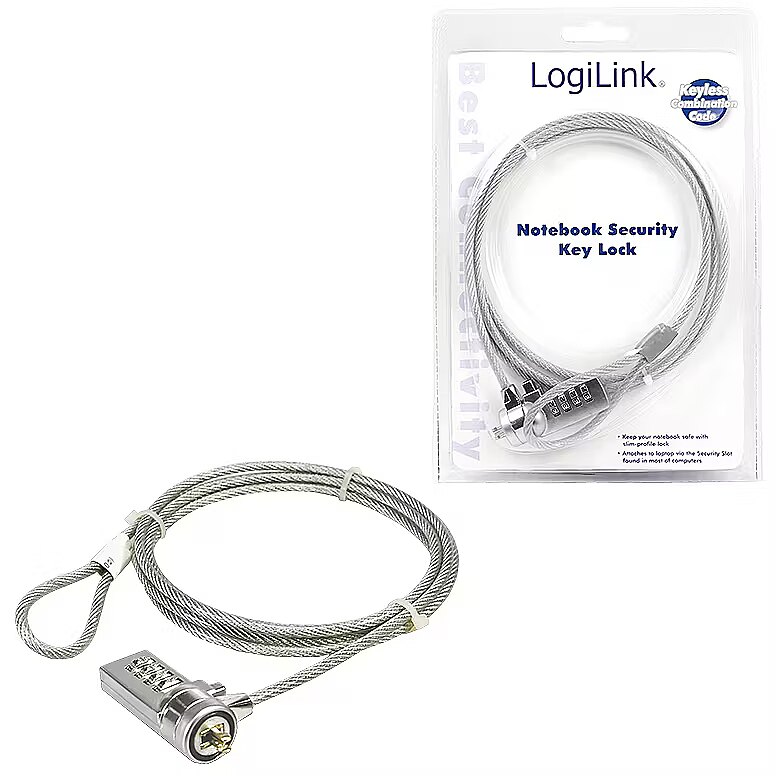 Protection from laptop theft from LogiLink industry standard with a combination lock. The robust steel cable has is a protective PVC coating and the lock made of a zinc alloy. It is attached to the notebook via the standardized security slot and on the opposite side of the steel strap. The combination is individually adjustable.
