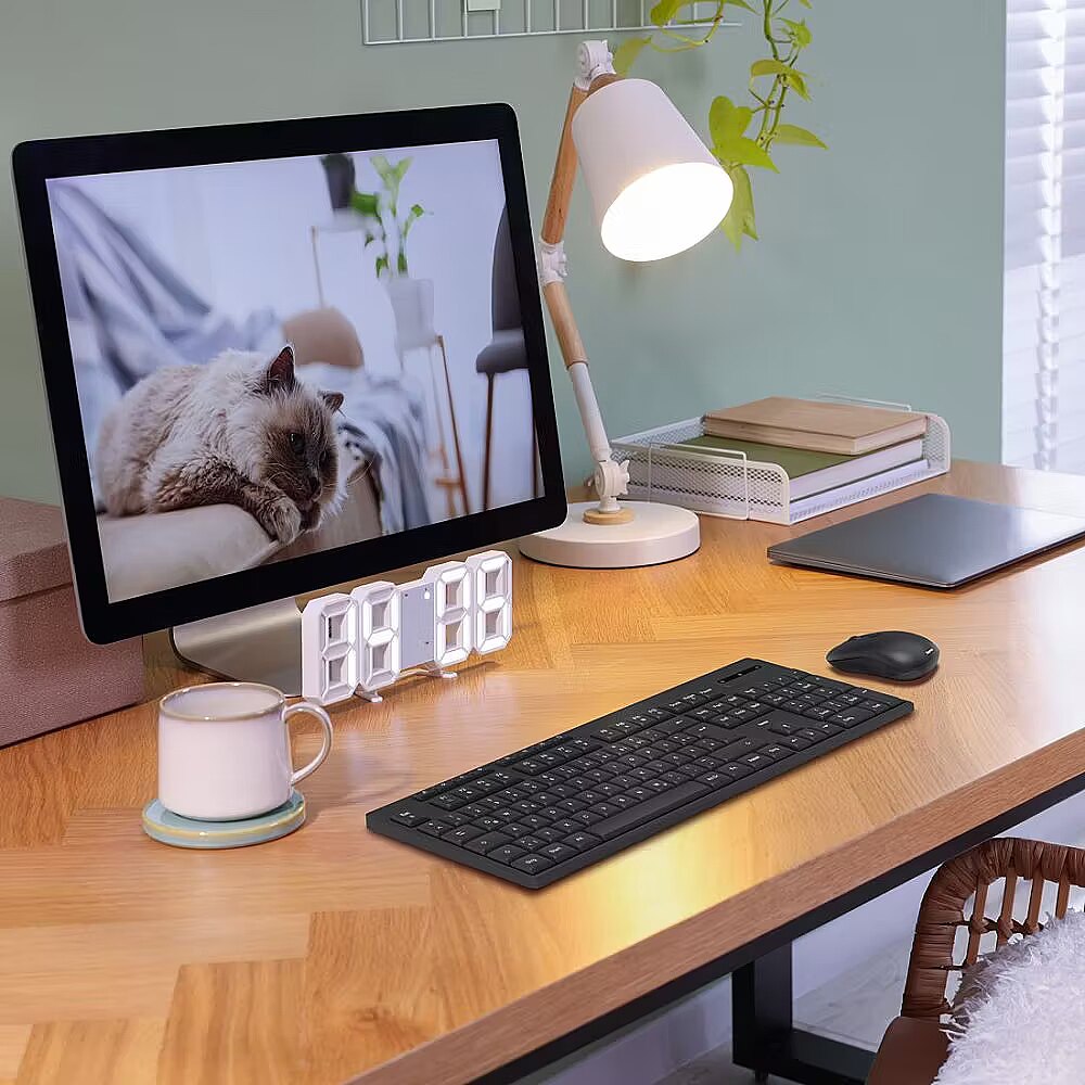 Klawiatura bezprzewodowa jest wyposażona w ciche klawisze, które pozwalają na spokojną pracę bez hałasu i zakłócania spokoju innych, idealne rozwiązanie do biura. Natomiast składane nóżki umożliwiają dostosowanie kąta nachylenia klawiatury, co zapewnia wygodną pozycję dłoni podczas pisania.