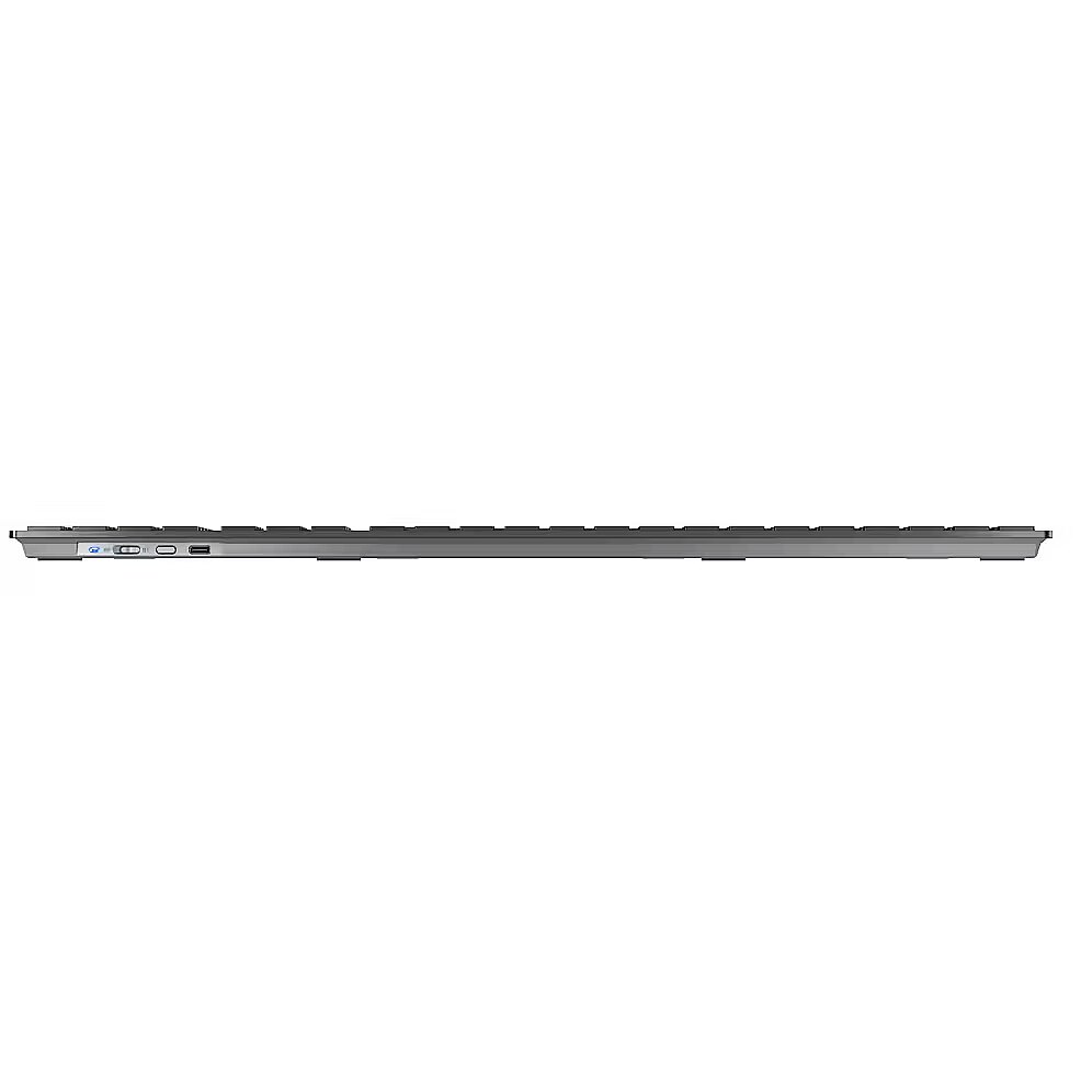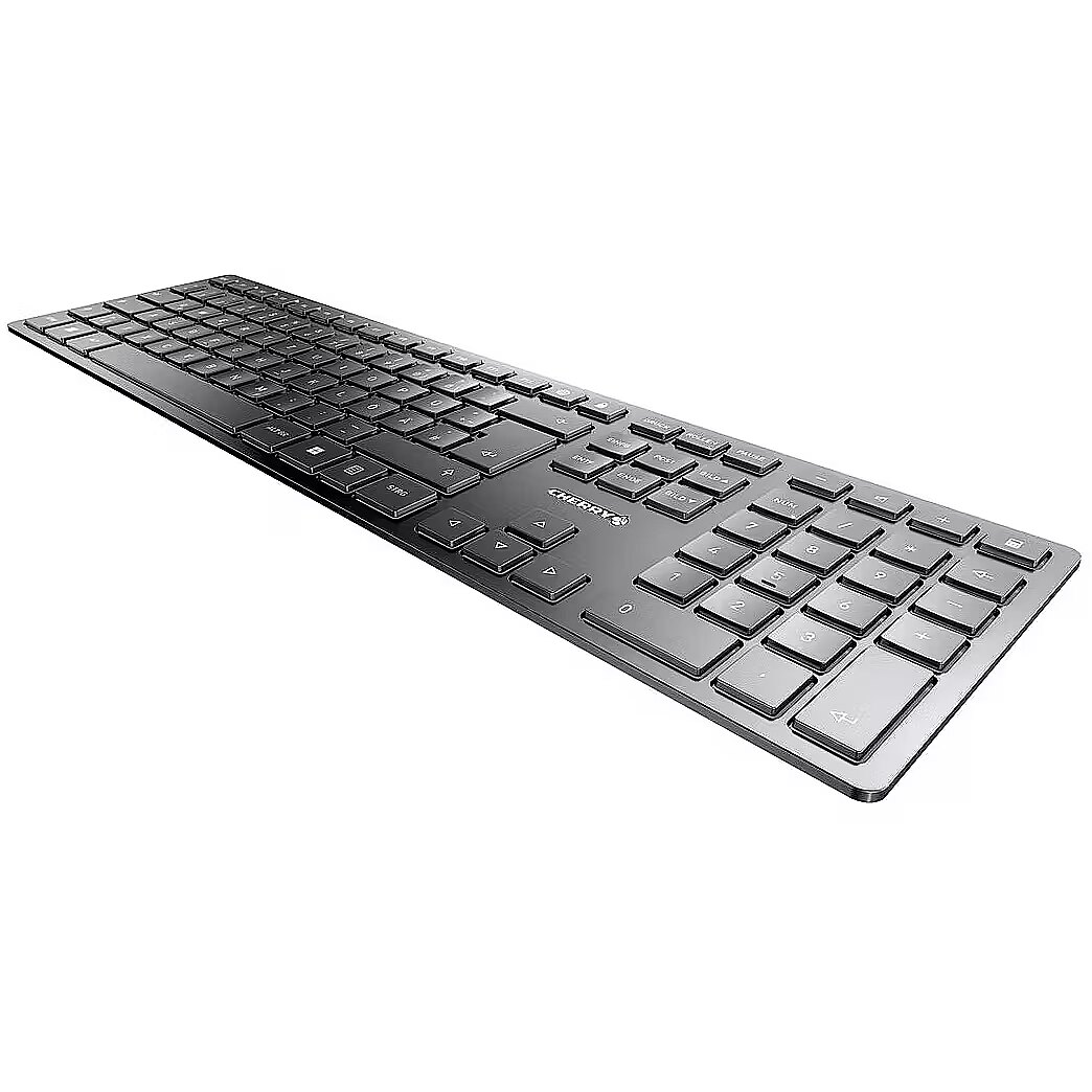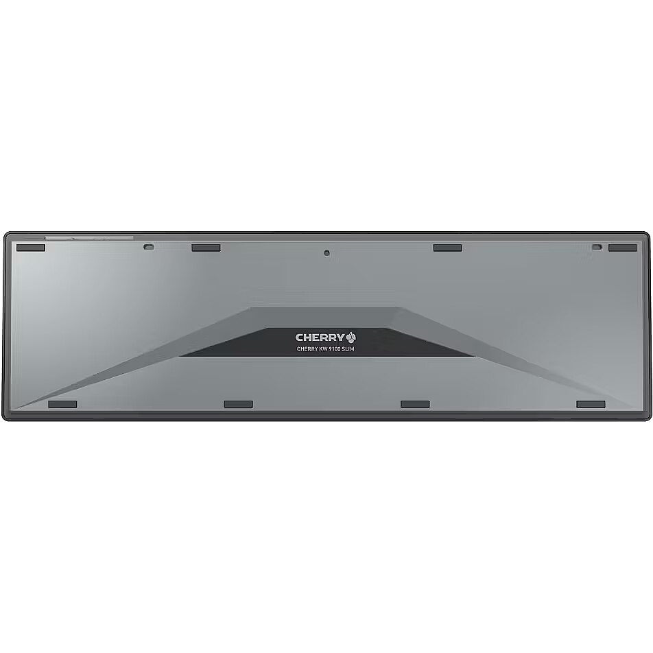 LongDesc - Regardless of whether you use it for mobile working, in the office or home, the CHERRY KW 9100 SLIM keyboard is your constant, stylish companion. Bluetooth® or wireless connectivity mean that there are no limits to what you can do with it.Rechargeable design keyboard for discerning customersQuality meets design and innovation. The CHERRY KW 9100 SLIM is a silver-black version of the keyboard from the popular DW 9100 SLIM desktop set. As with the tried and tested desktop version, first-class workmanship, perfectly coordinated design and innovative functions come together.Proven and versatile at the same time.The flat keyboard with AES-128 encryption has a solid metal plate and is as robust as CHERRY customers are used to despite its thin design. Thanks to the SX scissor mechanism, you type quietly and benefit from a precise pressure point similar to a laptop keyboard. Particularly frequently used functions can easily be utilised using the selected additional keys. Thus, the minimalistic beauty remains simple and user-friendly.Versatility is nevertheless not neglected: With the KW 9100 SLIM, you can easily switch back and forth between RF or Bluetooth® transmission. The magnetic support bar can be attached and detached in seconds, depending on your angle preference. The CHERRY KEYS software offers even more customisation options. You can use it to program all the keys of the wireless keyboard to your own requirements.Operation made easy.As far as use is concerned, the wireless computer keyboard is an uncomplicated companion, whether in the office or when working from home. Status LEDs built directly into the keys indicate whether the caps-lock, the scroll-lock or Num Lock keys of the thin CHERRY keyboard are activated. They also provide information about the battery charge level of the wireless keyboard. The keyboard is supplied with power by the included USB-C charging cable, which by the way comes completely without any plastic material in the packaging. You can continue to work in a relaxed manner during the charging process.