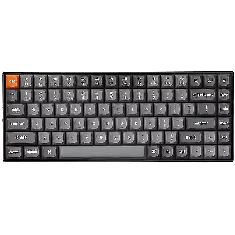 Summary - Keychron K2 Max. Keyboard form factor: 75%. Keyboard style: Straight. Connectivity technology: Wired & Wireless, Device interface: USB + RF Wireless + Bluetooth, Keyboard key switch: Mechanical, Keyboard number of keys: 84. Backlight type: RGB LED. Recommended usage: Universal. Product colour: Black, Grey