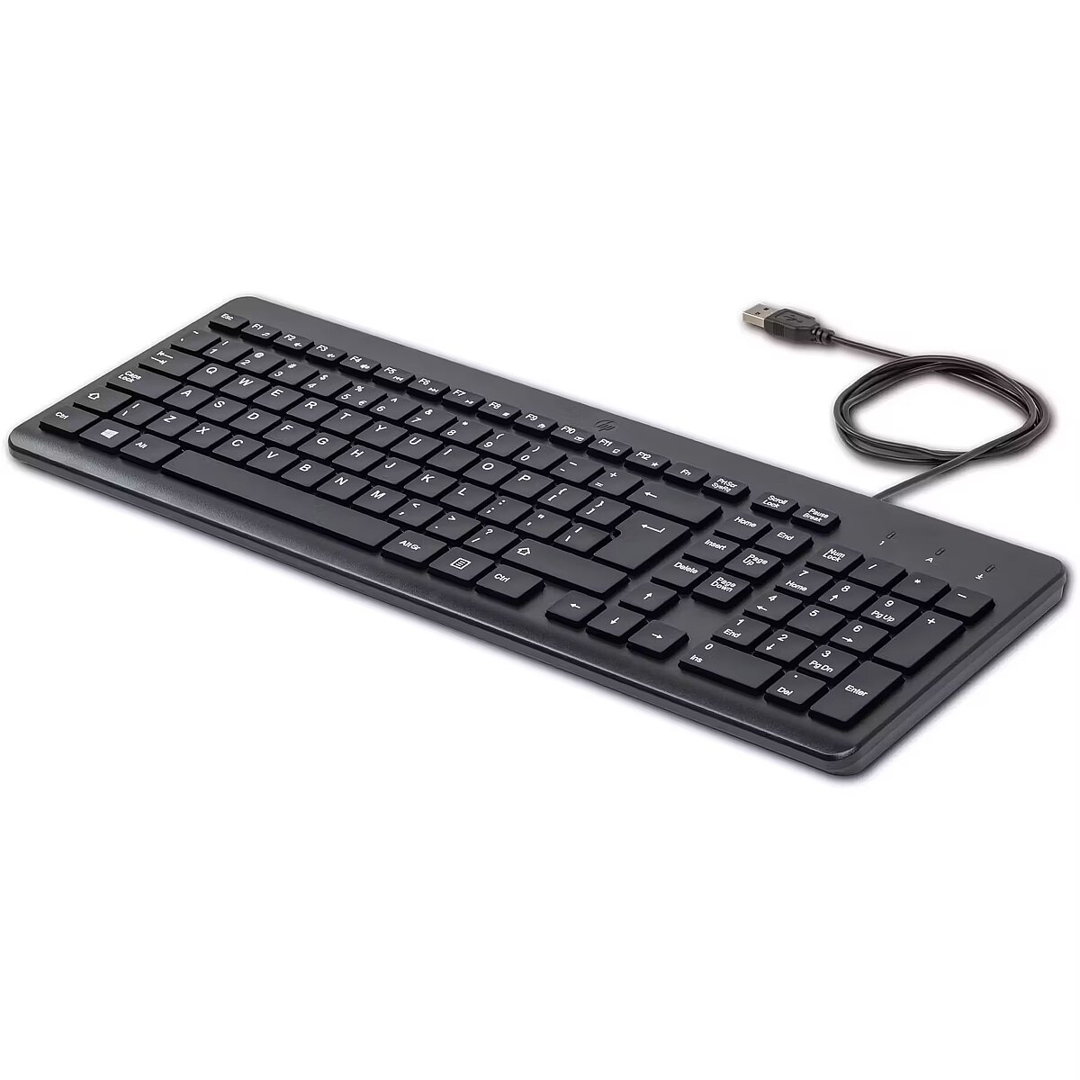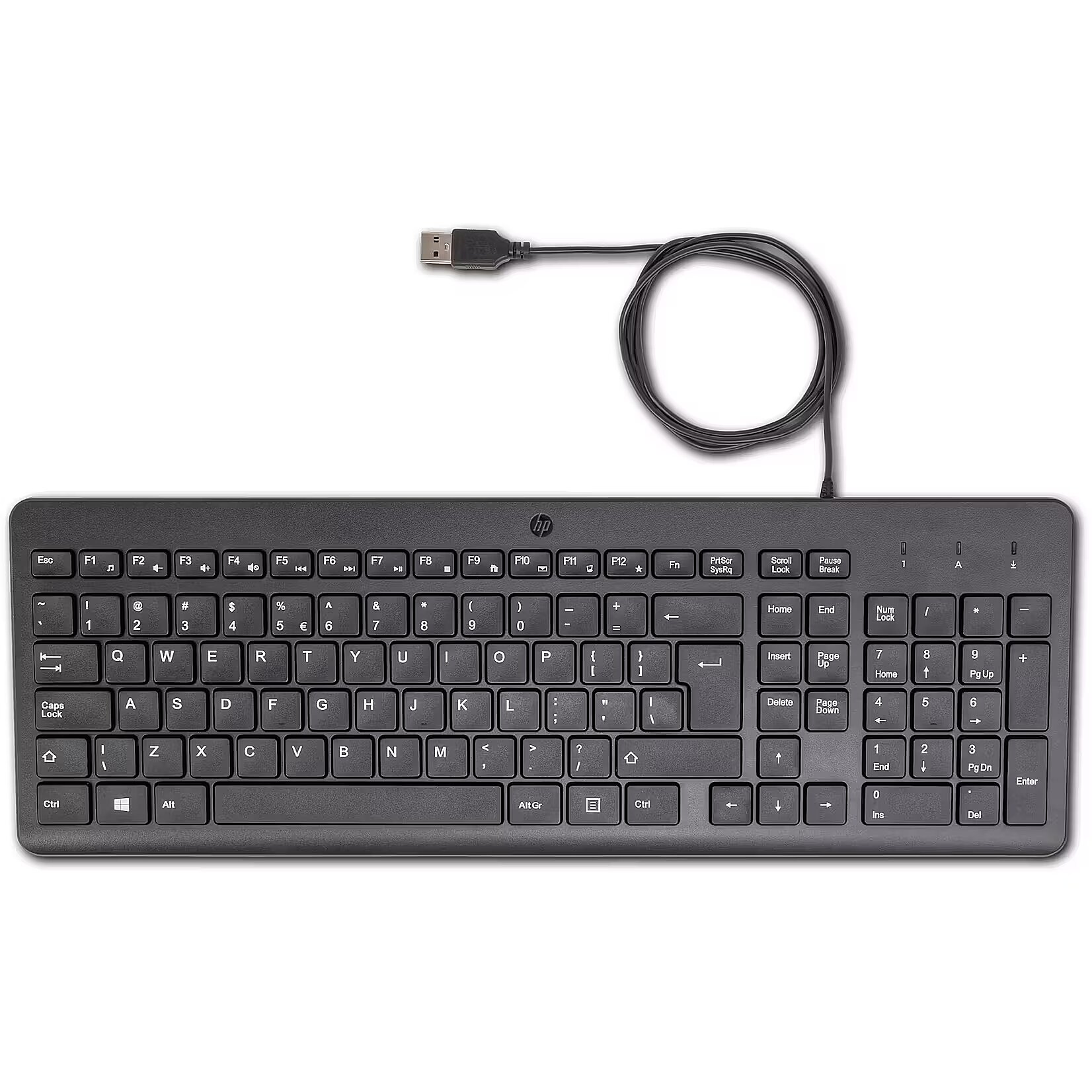 LongSummaryDescription - HP 150 Wired Keyboard. Keyboard form factor: Full-size (100%). Keyboard style: Straight. Connectivity technology: Wired, Device interface: USB, Keyboard key switch: Mechanical, Keyboard layout: QWERTY. Cable length: 1 m. Recommended usage: Universal. Product colour: Black