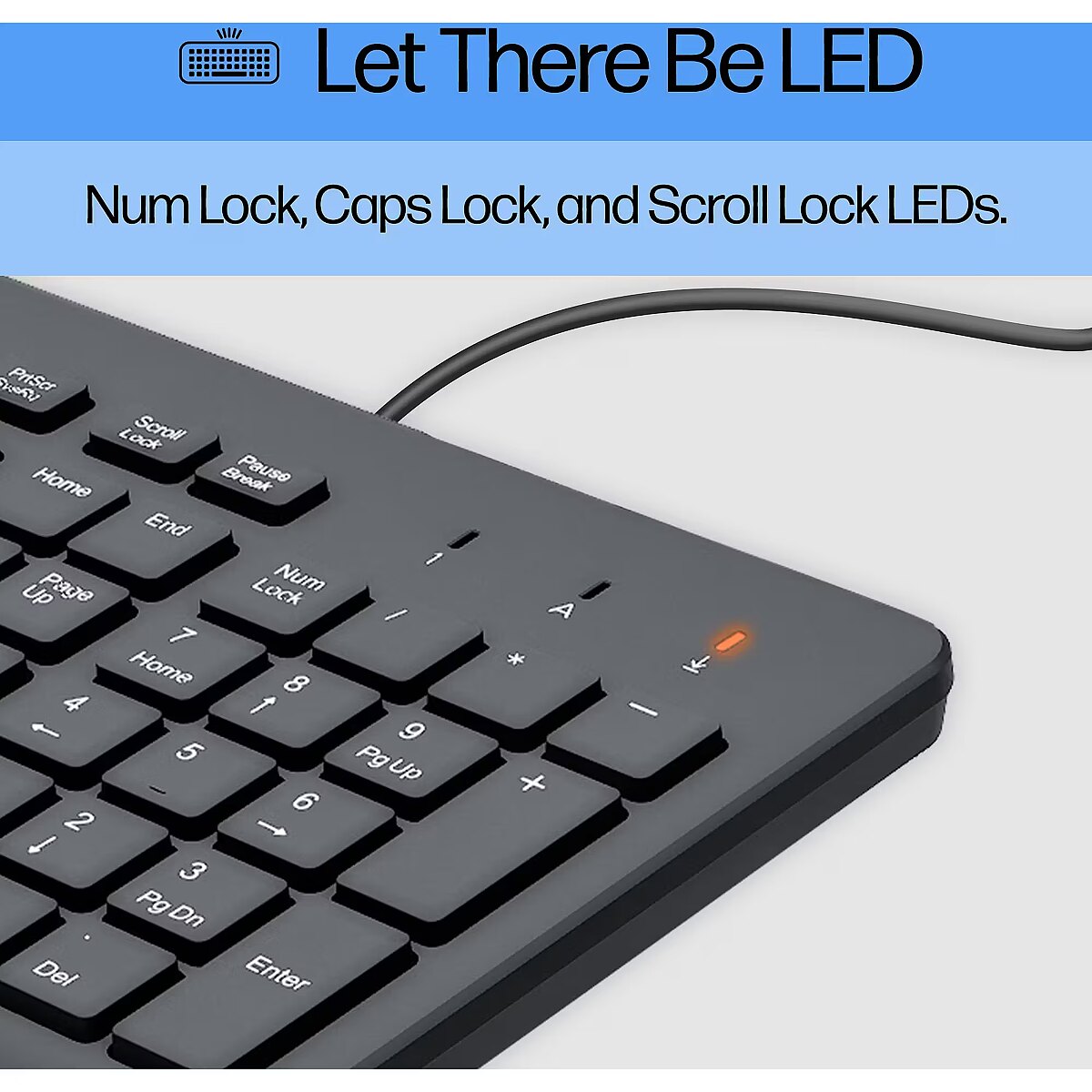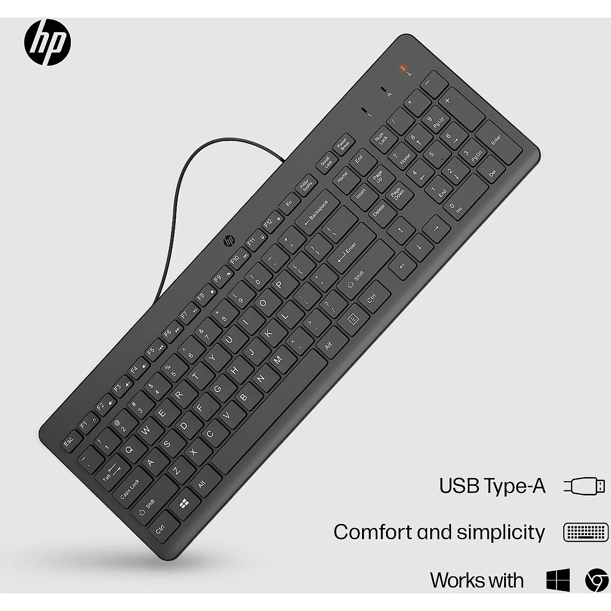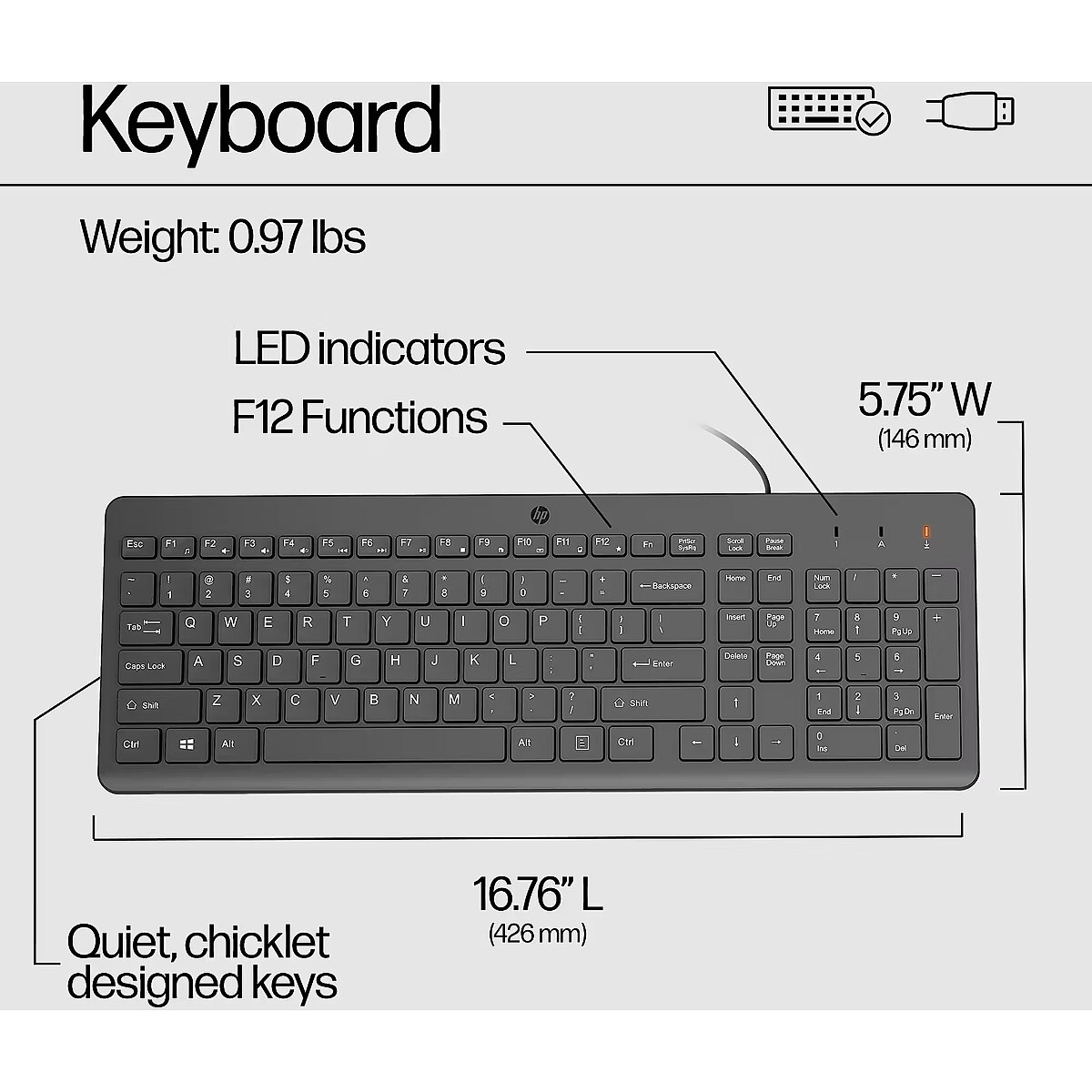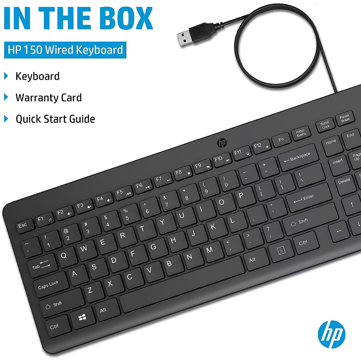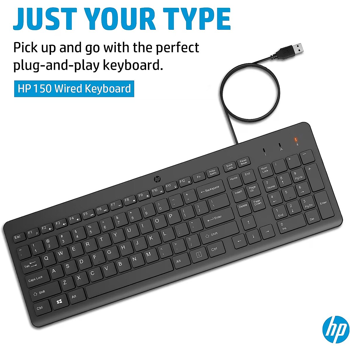 ShortSummaryDescription - HP 150 Wired Keyboard, Full-size (100%), Wired, USB, Mechanical, QWERTY, Black