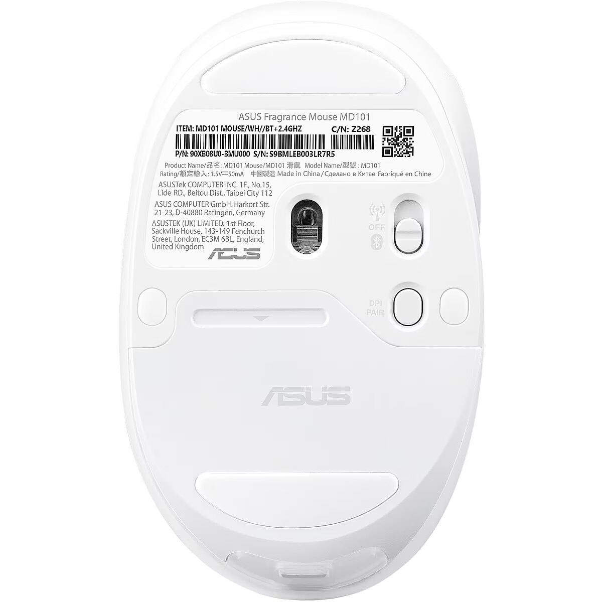 ShortSummaryDescription - ASUS Fragrance Mouse MD101, Ambidextrous, Optical, RF Wireless + Bluetooth, 2400 DPI, White