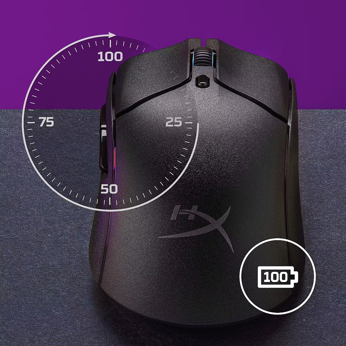 Iki 100 valandų baterijos veikimo laiko. Baterijos veikimo laikas „Pulsefire Haste 2 Wireless“ pelė siūlo iki 100 valandų baterijos veikimo laiko, todėl praleisite daugiau laiko laimėjimams rinkti ir mažiau laiko laukdami, kol įkrausite bateriją.