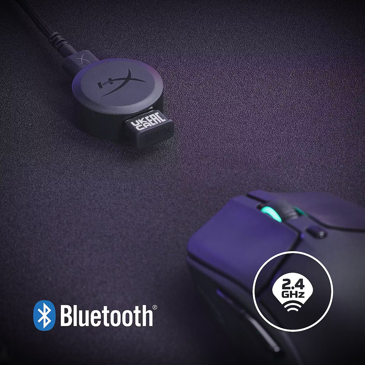 Use the dongle to connect via 2.4 GHz wireless, or use Bluetooth to connect with compatible devices.