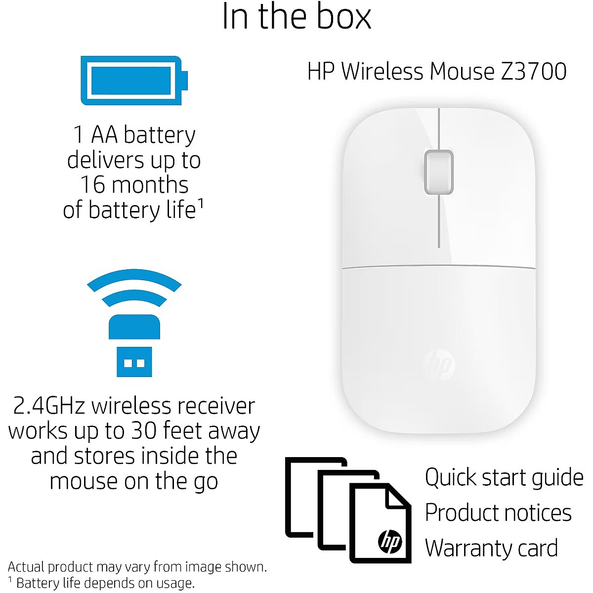Title - HP Z3700 White Wireless Mouse