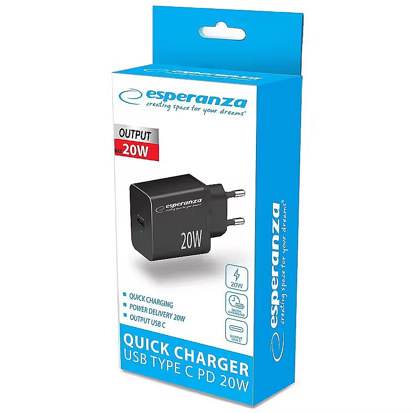 productName - "Esperanza EZC104K" tinklo įkroviklis 20W Juodas