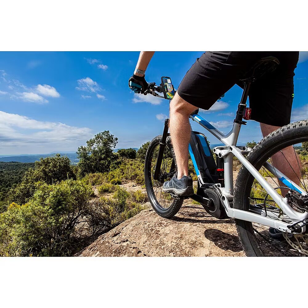 Aprašymas - Mobilus laikiklis su spaustuvu Reguliuojasi: lengvai ir individualiai pritaikomas prie įrenginio naudojant judantį spaustuką Galima pasukti 360° Optimalus reguliavimas: rutulinis šarnyras leidžia pasukti įrenginį 360° kampu ir reguliuoti pasvirimo kampą, idealiai tinka vertikaliai arba horizontaliai padėti Lengvai montuojamas Lengvai tvirtinamas prie vairo strypo dėl guminės juostos su individualiu reguliavimu Tinka kiekvienam išmaniajam telefonui Tinka bet kokio tipo išmaniajam telefonui su dėklu ar dangteliu, taip pat be jokio dangtelio.