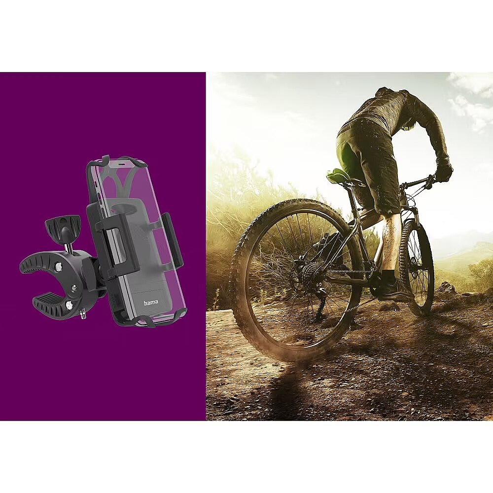 ShortSummaryDescription - "Hama Strong", Mobilusis telefonas/išmanusis telefonas, Pasyvus laikiklis, Dviratis, Juodas