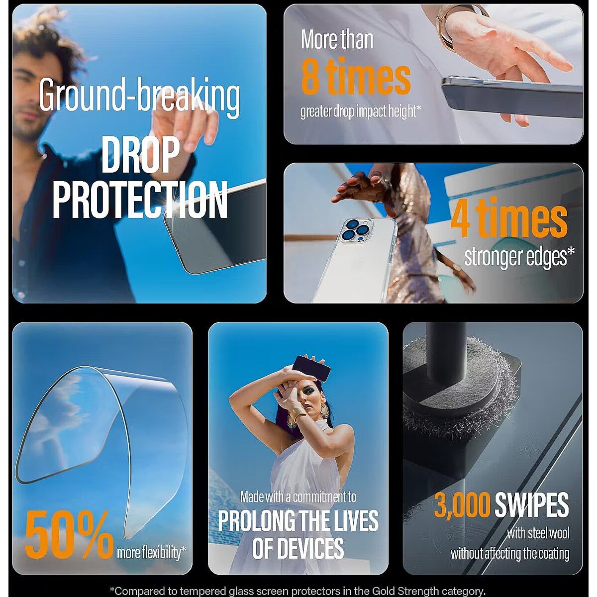 Performance - Material - Tempered glass, Polyethylene terephthalate (PET), Silicone