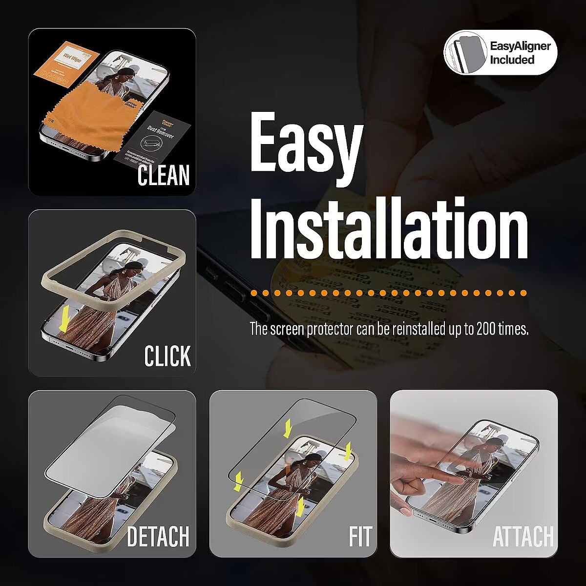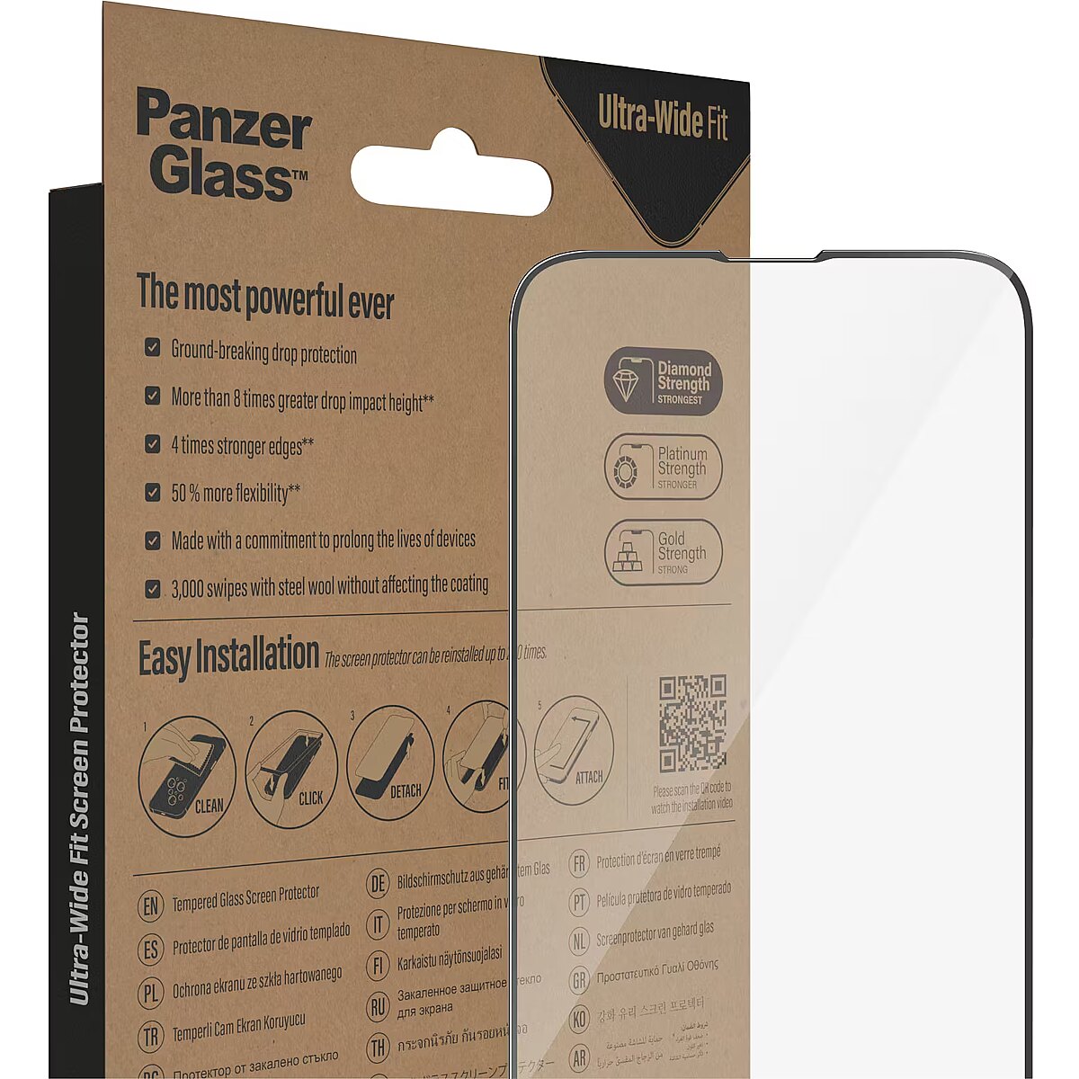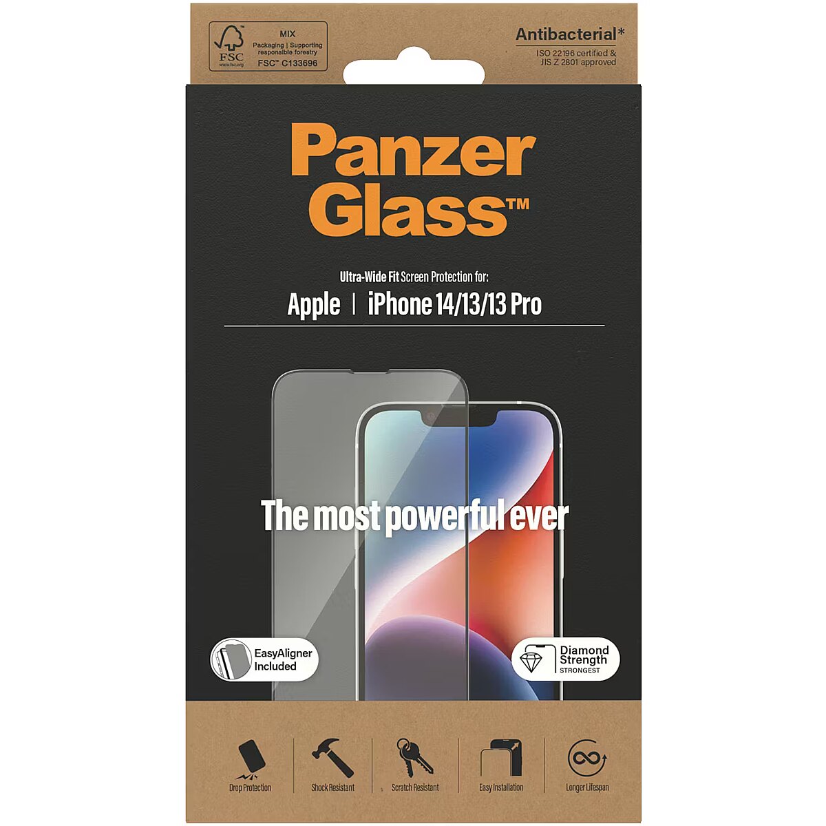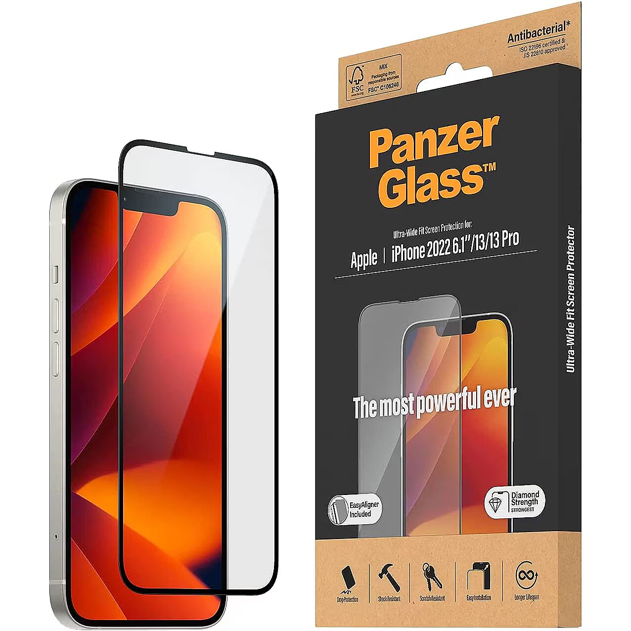 LongDesc - Protect your phone from the hazards of everyday life with a PanzerGlass® screen protector. Accidental bumps against sharp-edged dangers in your pocket or crushing falls onto stone-hard pavements are no match for this scratch and shock-resistant screen protector, which provides high-level drop protection. It even has a smudge-free coating with antibacterial effect that reduces traces of fingerprints and kills up to 99.99% of all common surface bacteria.The screen protector comes with an EasyAligner that makes installation so simple you can do it perfectly on the first attempt… even if you’re all thumbs. And once it’s installed, you’ll never again fear the sight of your phone tumbling to the ground. This may not happen, but if it does, you’ll regret not having clicked “add to cart”.The Ultra-Wide Fit screen protector covers the entire front surface of your phone, while still leaving room for a case. It provides a complete and crystal-clear view of your screen and comes in FSC™-certified packaging that can be recycled