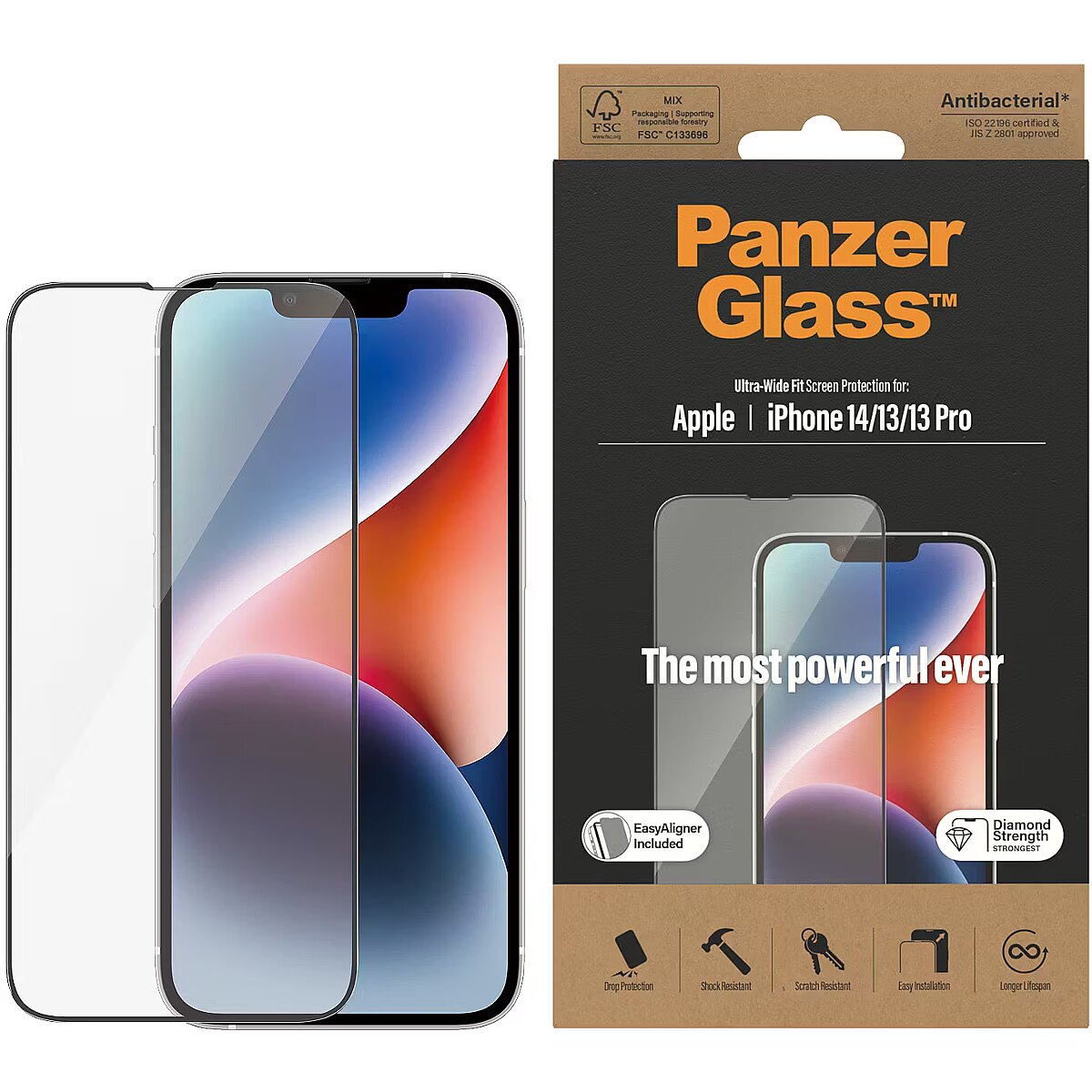 Name - PanzerGlass | Screen protector | Apple | iPhone 14/13/13 Pro | Tempered Glass | Transparent | Fingerprint resistant; Diamond strength; Ultra-Wide Fit