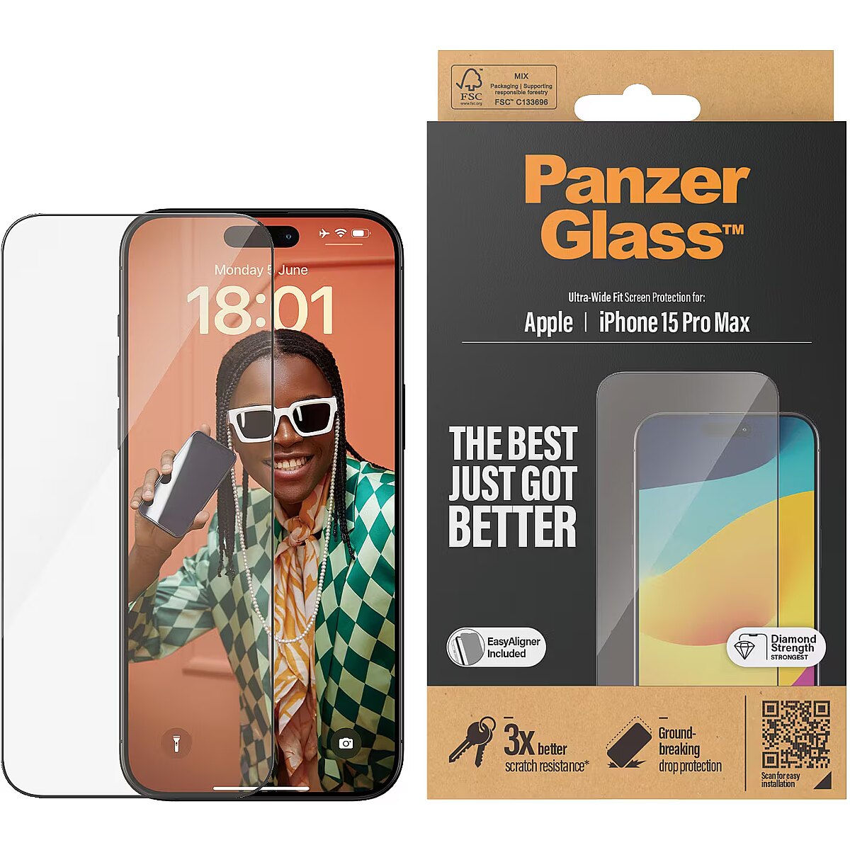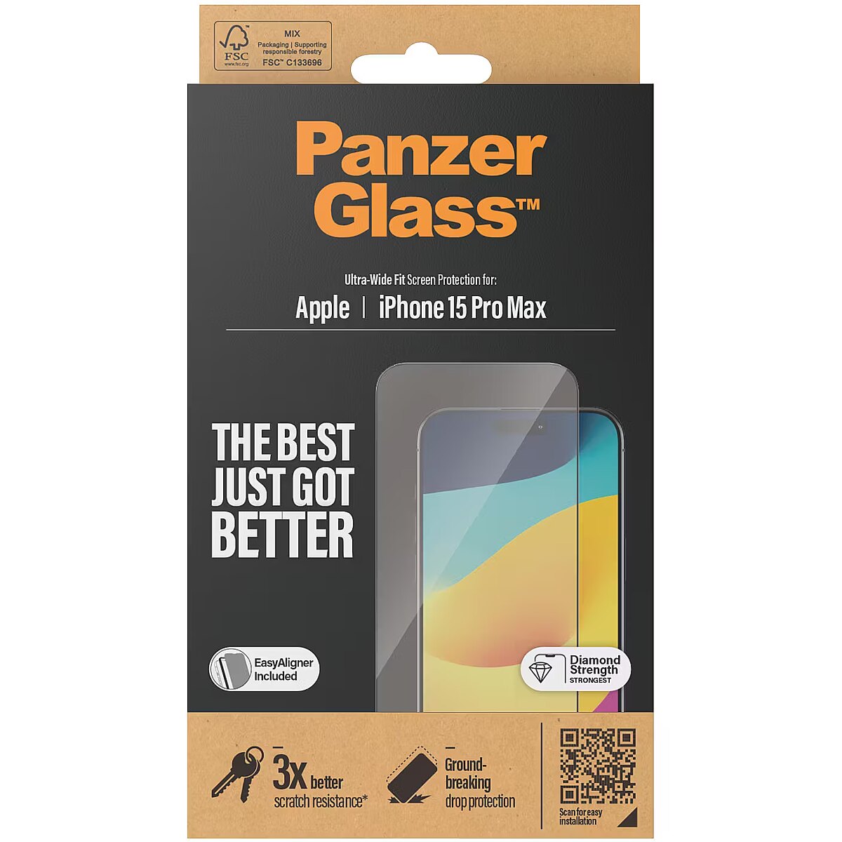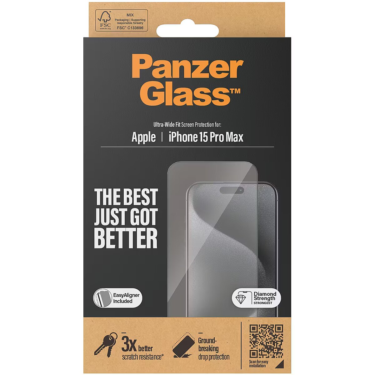Name - PanzerGlass | Screen protector | Apple | IPhone 15 Pro Max | Glass | Transparent | Ultra-wide fit, Scratch resistant, Drop protection, EasyAligner included