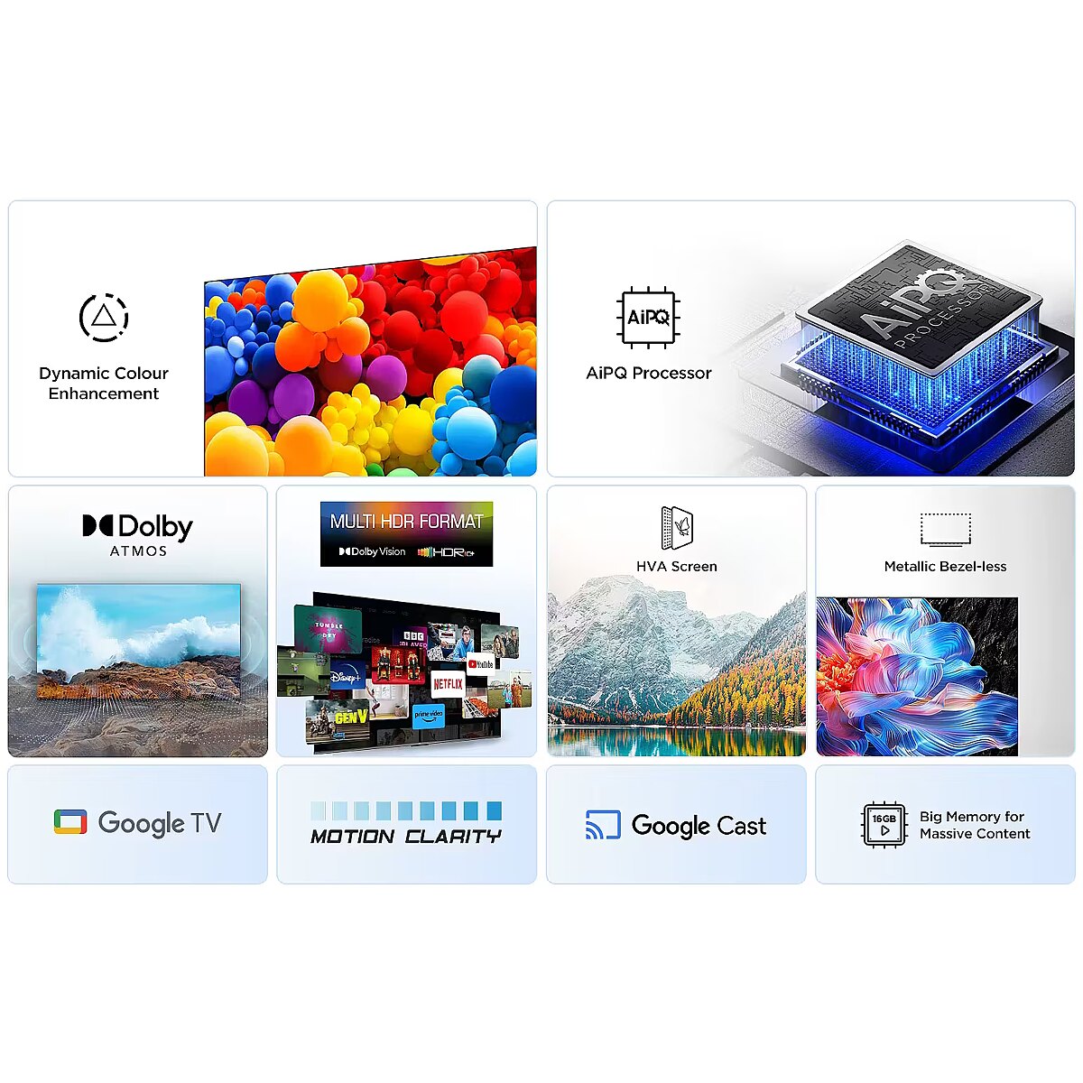TCL technologies (AV/TV) Brand-specific features - 4K HDR Display/Chromecast Built-In/HVA Screen/Motion Clarity/T-cast