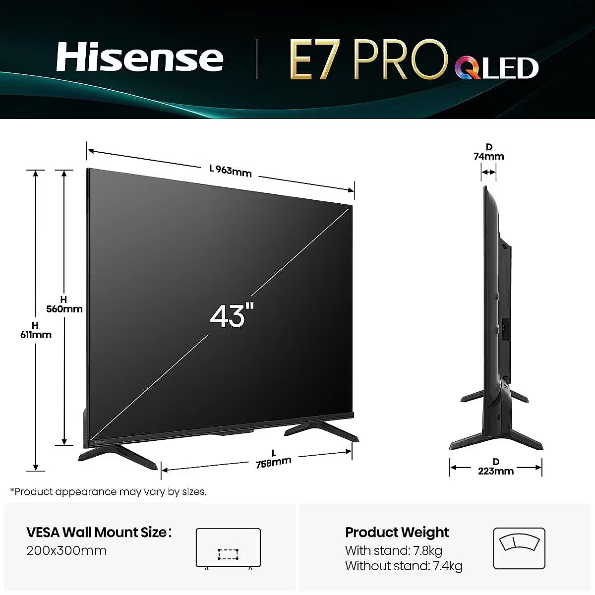 Name - HISENSE 43E77Q PRO 43" QLED 4K VidaaOS 144Hz Dolby Atmos