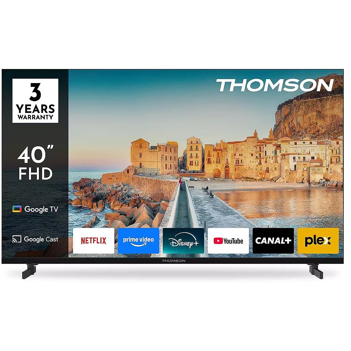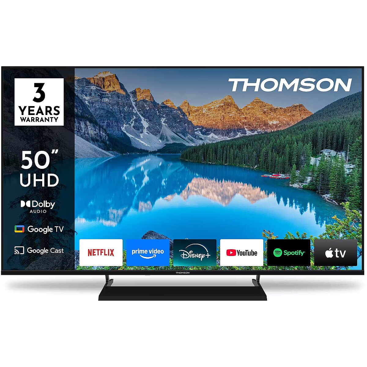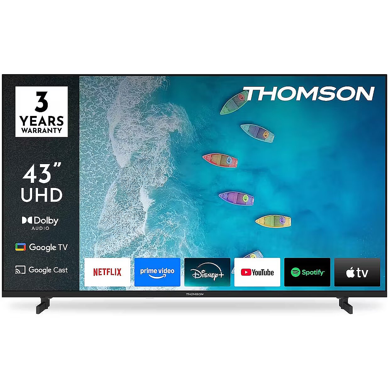 Description - Bring your favourite content to life with the Thomson Google TV 43" UHD, delivering breathtaking 4K Ultra HD picture quality for a truly immersive viewing experience. The Google 5.0 operating system perfectly organises your apps, subscriptions, and favourite content in one easy-to-navigate interface. Set up multiple user profiles and enjoy personalised recommendations tailored to each viewer. With access to over 400,000 movies and TV shows, smart voice control via Google Assistant, and Google Cast for seamless streaming from compatible smart devices, smart entertainment has never been more convenient. Experience the sharp clarity of 4K UHD resolution, offering four times the detail of Full HD. With HDR10 support, you’ll enjoy enhanced contrast, vibrant colours, and balanced brightness that bring every scene to life with stunning realism. The included ergonomic remote control features backlit buttons, making it easy to use even in low-light environments. Plus, with the integrated Google Assistant, you can search for content, get viewing suggestions, or control compatible smart home devices—simply by using your voice. The built-in triple tuner allows for flexible reception via satellite, terrestrial antenna, or cable, allowing you access to your favourite channels. Whether you're streaming, browsing, or watching live TV, the Thomson Google TV 43" UHD offers an effortless, high-quality entertainment experience every day.