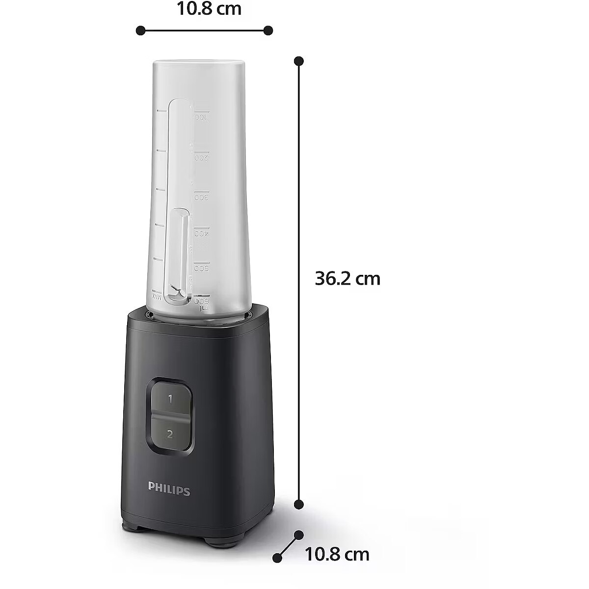 Summary - Philips HR2040/00. Type: Tabletop blender, Cord length: 0.85 m. Rotational speed (max): 25000 RPM, Control type: Buttons. Housing material: Metal, Blade material: Stainless steel, Material jar(s): PP. Power: 350 W, Power source: AC, AC input voltage: 230 V. Width: 108 mm, Depth: 108 mm, Height: 362 mm