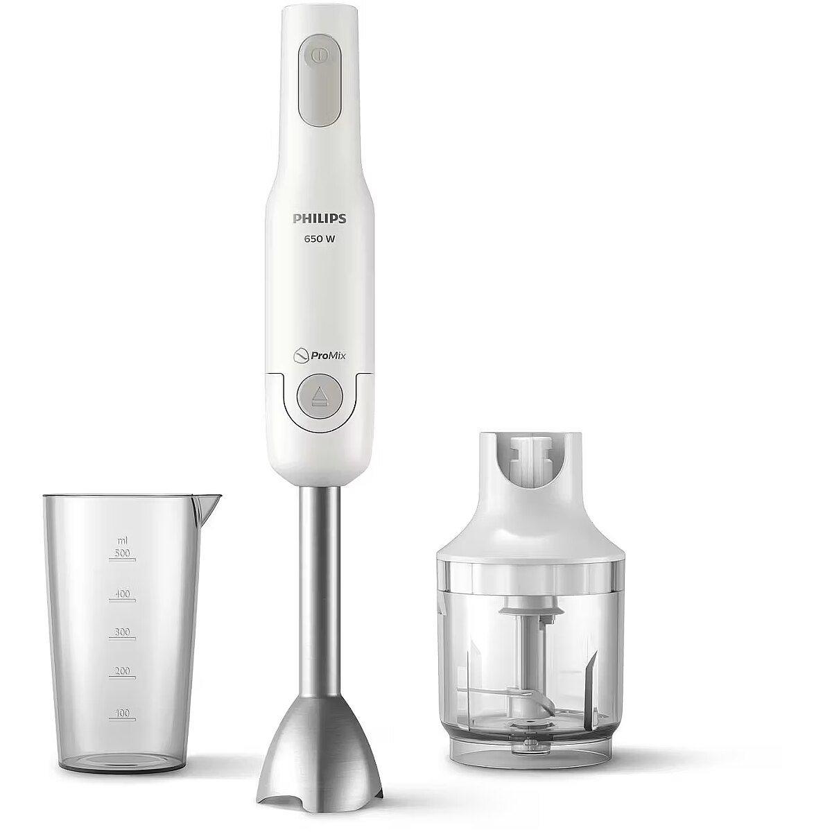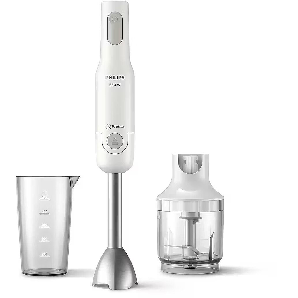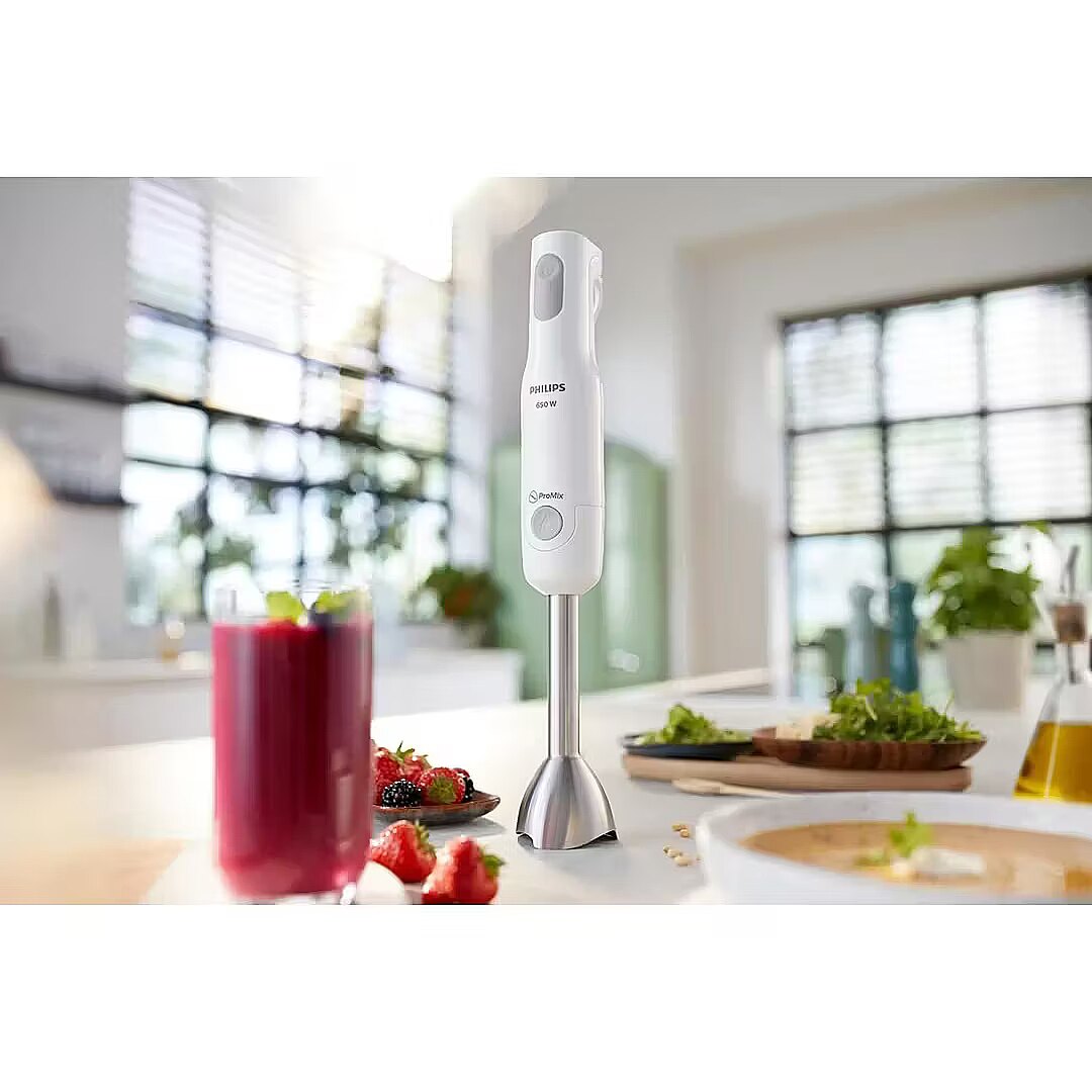 ShortSummaryDescription - Philips Daily Collection ProMix Hand Blender, Immersion blender, Pulse function, 1.2 m, 650 W, Grey, White