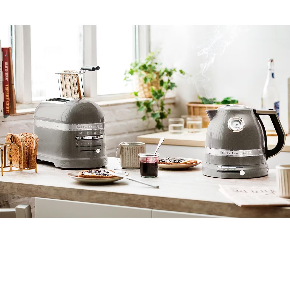 ShortSummaryDescription - KitchenAid 5KEK1522EMS, 1,5 l, 2400 W, sidabrinė, nerūdijantis plienas, aliuminis, reguliuojamas termostatas, vandens lygio indikatorius