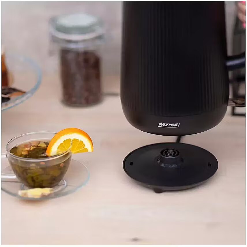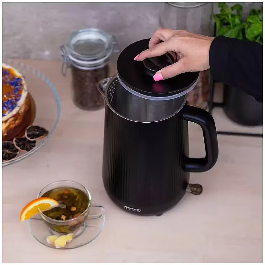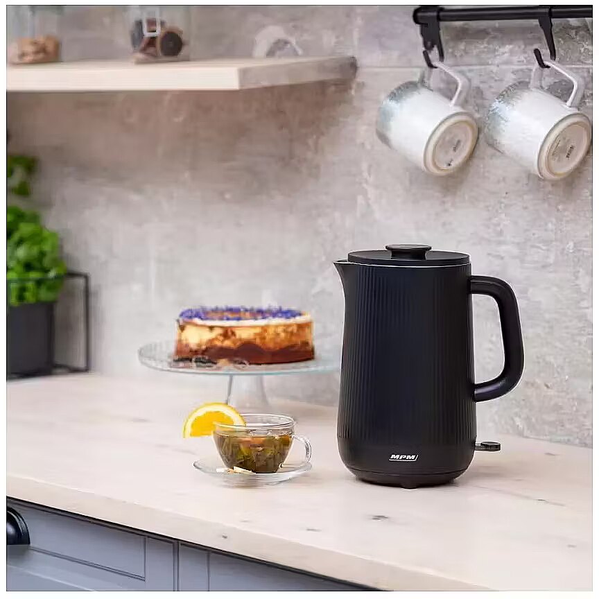 Do you enjoy the taste of aromatic coffee, hot tea, or healthy herbs? Discover the MCZ115/C double-walled cordless kettle, which boils water instantly and maintains its temperature longer than standard kettles. The kettle's 1.5-liter, pressed inner jug is made of high-quality stainless steel with a seamless construction, eliminating leaks and ensuring your brews will delight with their natural flavor. A graduated water level indicator allows you to precisely measure the amount of water to boil. The casing is made of ribbed plastic and the kettle's elegant black color will also make it a stylish addition to your kitchen.