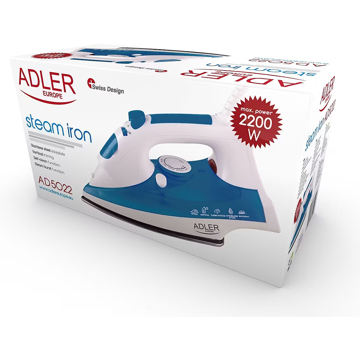 Name - Iron | Adler | AD 5022 | With cord | 2200 W | Purple/White