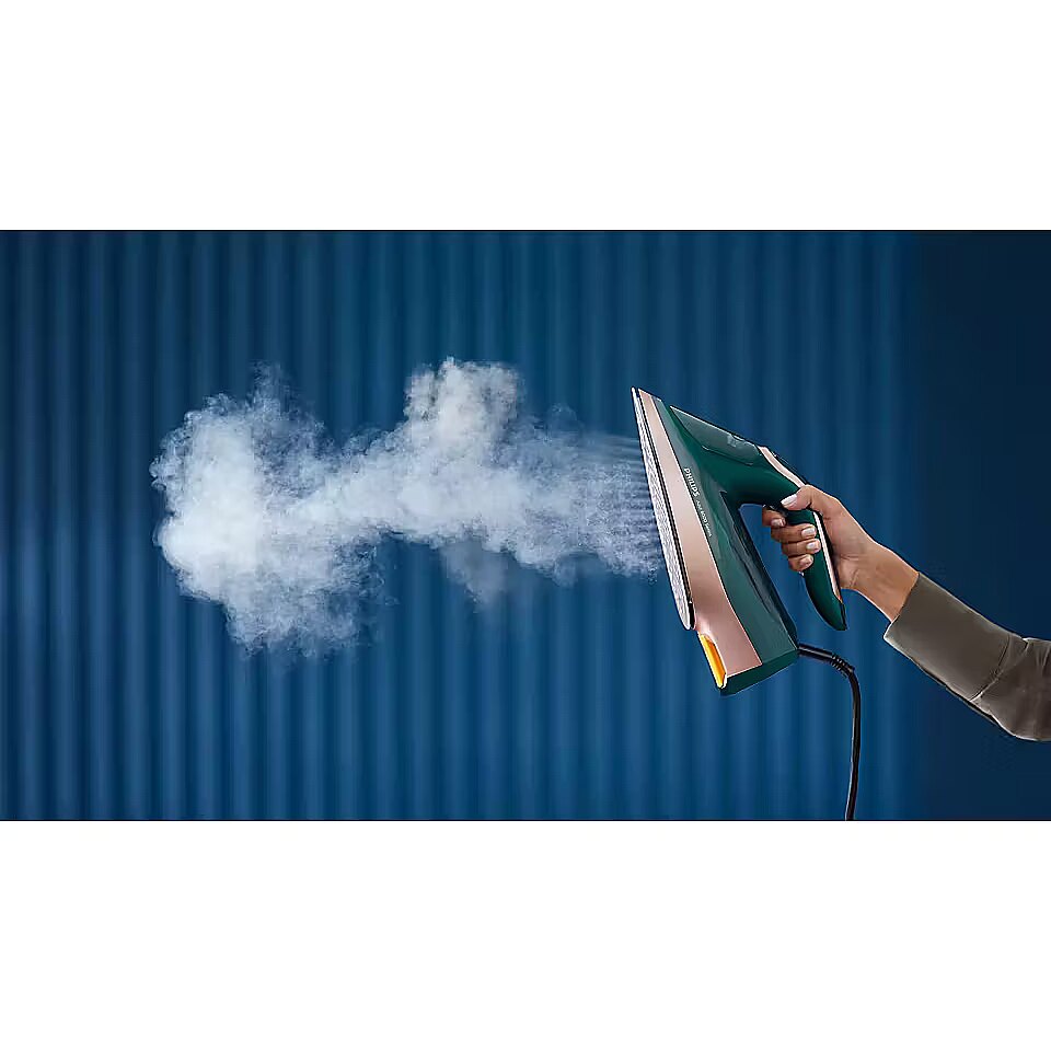ShortSummaryDescription - Philips 8000 series DST8030/70, Steam iron, SteamGlide Elite soleplate, 2.5 m, 240 g/min, Green, 70 g/min