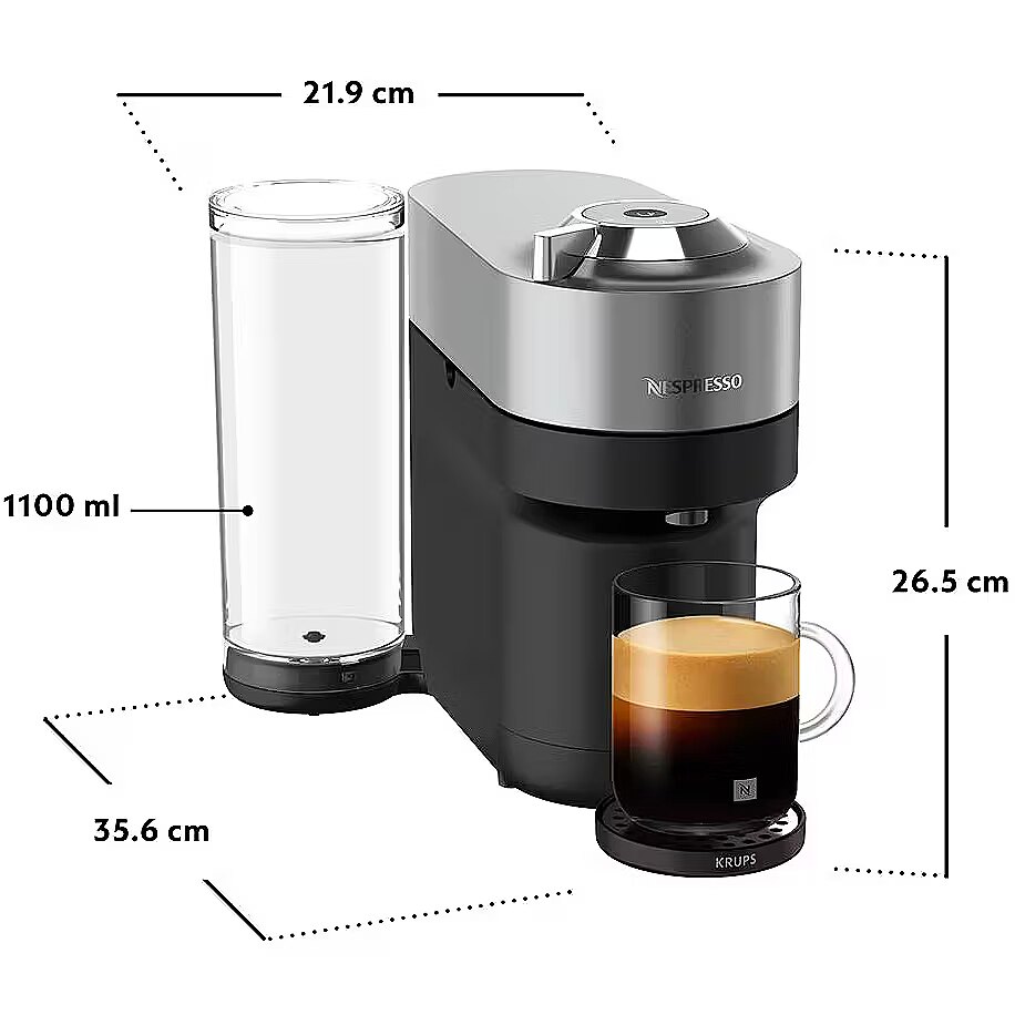 ShortSummaryDescription - Krups Vertuo Pop XN930T.23AT, Capsule coffee machine, 1.1 L, Coffee capsule, Grey