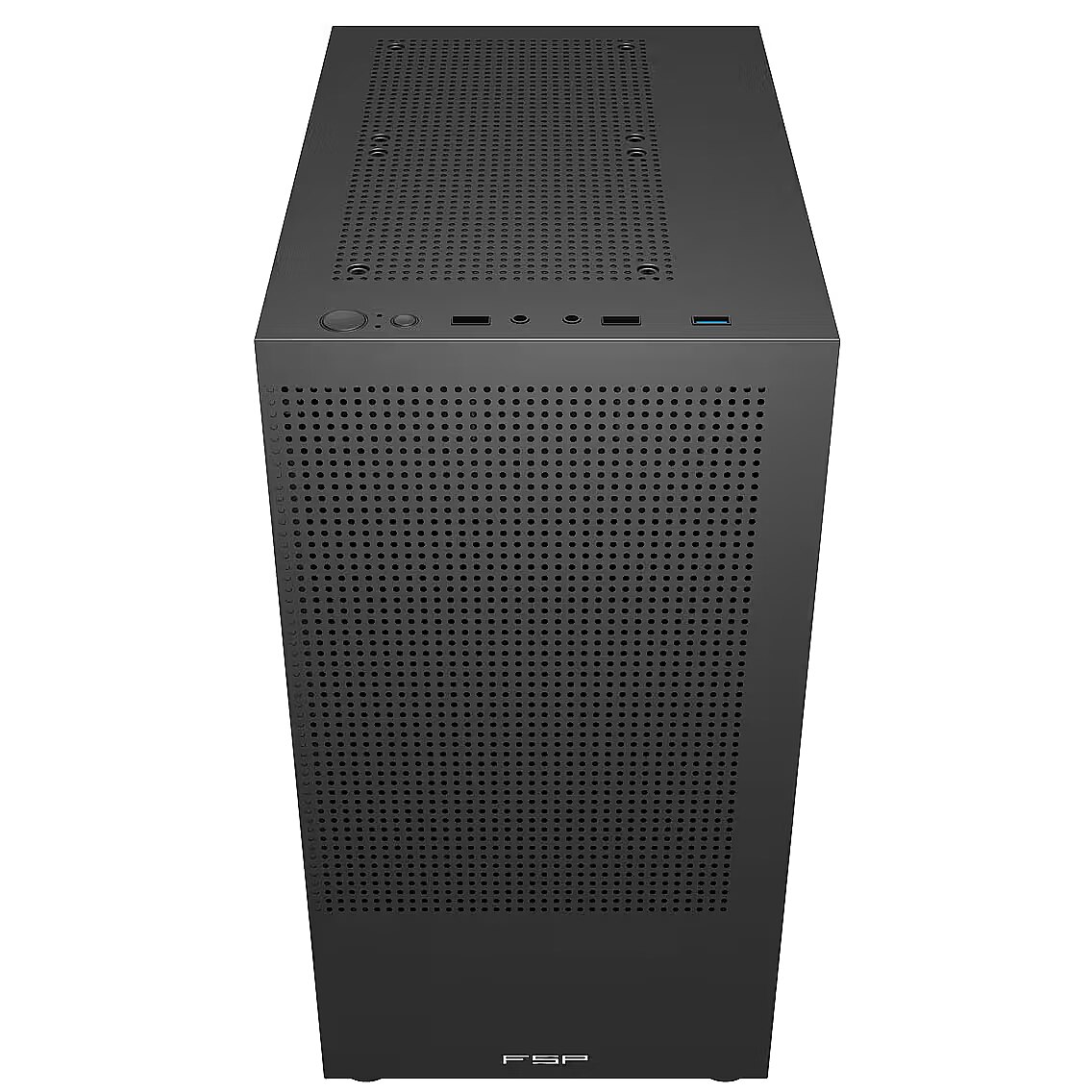 LongDesc - Sleek and Minimalistic DesignFSP S110 PC case features a clean, minimalistic look with mesh panels for optimized airflow.Perforated Metal Mesh PanelsThe mesh panels and strategic internal layout ensure maximum airflow, keeping your components at optimal temperatures even under the heaviest loads.Spacious and Organized InteriorFSP S110 PC case is designed to accommodate multiple types of motherboards and high-performance graphic cards with ease. The dedicated PSU and SSDs / HDDs compartment at the bottom keeps cables organized and airflow unobstructed, enhancing overall system aesthetics.Convenient I/O PanelIncludes USB3.0, and dual USB2.0 ports for easy access and enhanced functionality.