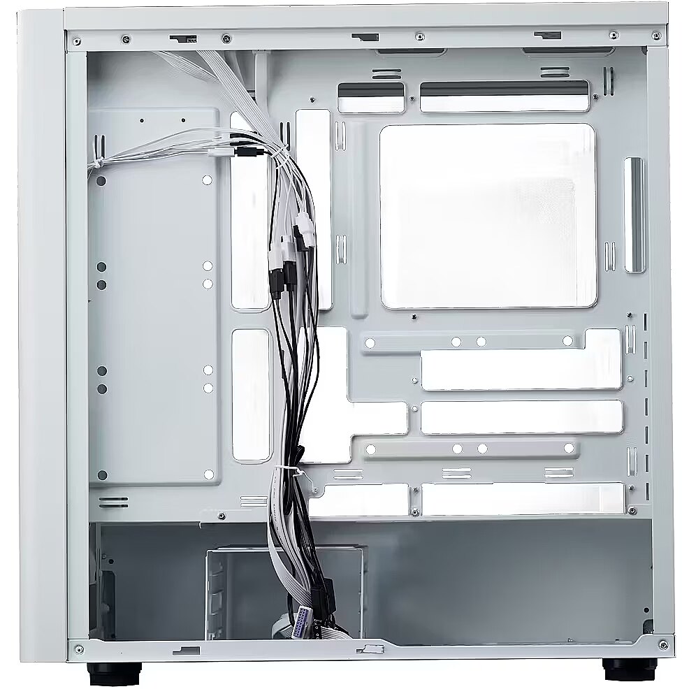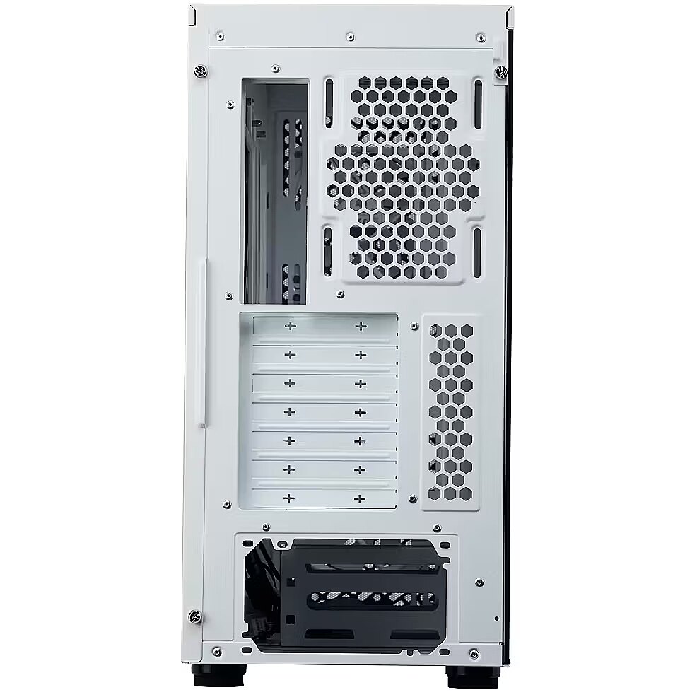 Techninės specifikacijos: Spalva: balta Medžiaga: plienas; šoninis skydelis - grūdintas stiklas Pagrindinių plokščių palaikymas: Mini-ITX / Micro-ATX / ATX / E-ATX Išplėtimo lizdai: 7 Disko lizdai: 2 × 3,5″ HDD; 2 × 2,5″ SSD (iš viso iki 6) Įvesties / išvesties prievadai: 1 × USB 3.2 Gen1 Type-C; 1 × USB 3.2 Gen1 Type-C; 1 × USB 3.2 Gen1 Type-A; 1× 3,5 mm kombinuotoji garso jungtis Ventiliatoriai viduje: priekyje 3× 120 mm ARGB Ventiliatorių ir radiatoriaus palaikymas: - Priekyje: iki 3× 140 mm arba 3× 120 mm; radiatorius iki 420 mm (ribiniai matmenys ~457×140×27 mm) - Viršuje: iki 3× 120 mm arba 2× 140 mm; radiatorius iki 360 mm - Gale: iki 120 mm; radiatorius iki 120 mm GPU ilgis: iki 410 mm be priekinio radiatoriaus; iki 360 mm su radiatoriumi priekyje CPU aušintuvo aukštis: iki 170 mm PSU ilgis: iki 170 mm; iki 210 mm su nuimtu HDD narveliu Kabelių tvarkymo vieta už pagrindinės plokštės: 33-35 mm Dulkių filtrai: priekyje, viršuje, apačioje HDD narvelis: nuimamas