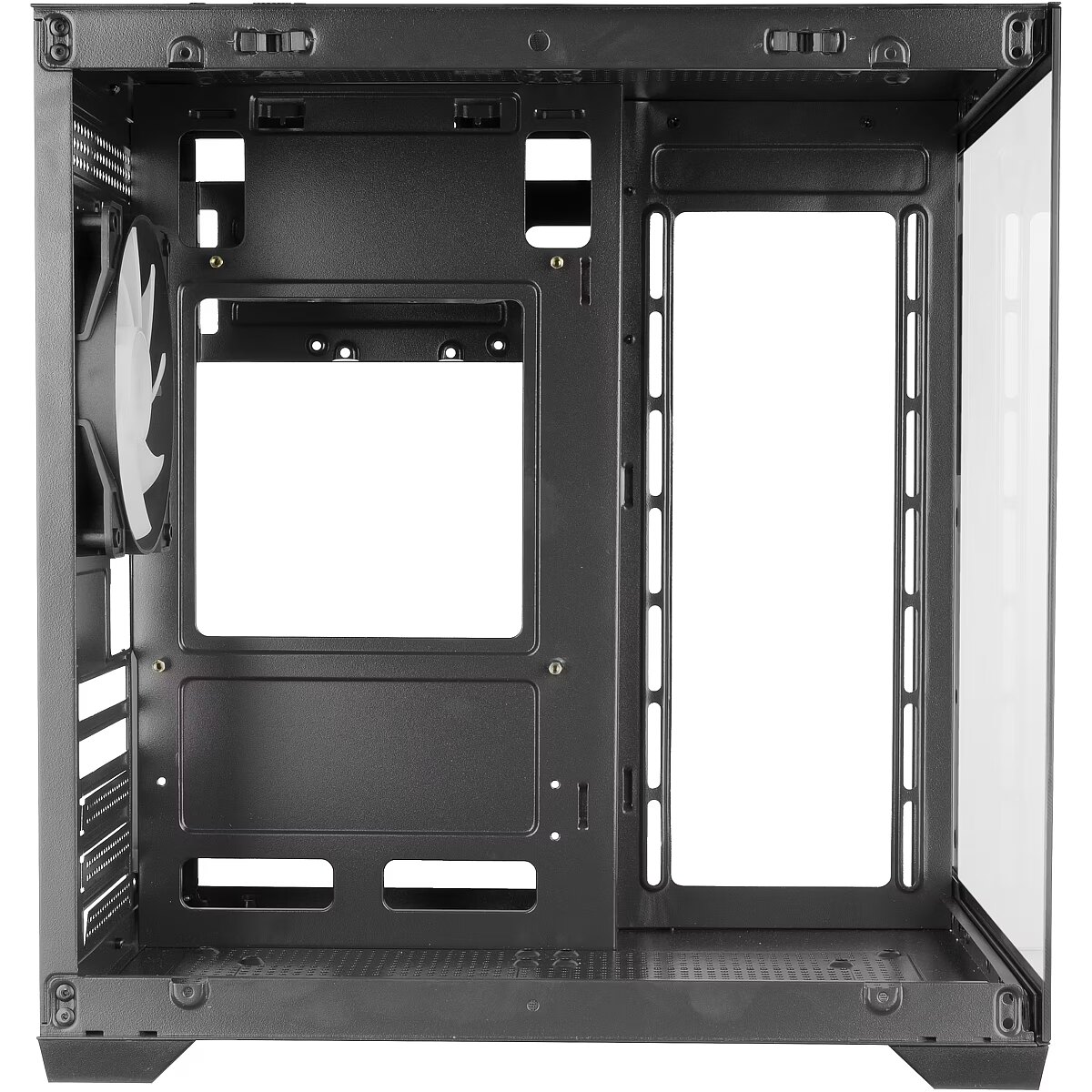 „MC-View2“ mini bokštas kompaktiškame korpuse derina avangardinį dizainą ir pažangias funkcijas. Ištisinės grūdinto stiklo plokštės priekyje ir šonuose suteikia panoraminį vaizdą į vidų, efektyviai parodydamos kiekvieną komponentą. Korpusas yra įrengtas iš anksto sumontuotu 120 mm galiniu ventiliatoriumi, užtikrinančiu efektyvų aušinimą nuo pat pirmos akimirkos. Be to, laidų tvarkymo sistema, suderinamumas su skysčio aušinimo sistemomis iki 240 mm ir palaikymas iki septynių 120 mm ventiliatorių garantuoja optimizuotą oro srautą, išlaikydami jūsų sistemą tvarkingą ir užtikrindami aukštą našumą.