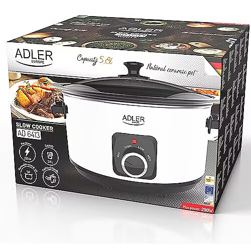 Name - Adler | Slow Cooker | AD 6413w | 290 W | 5.8 L | Number of programs 3 | White