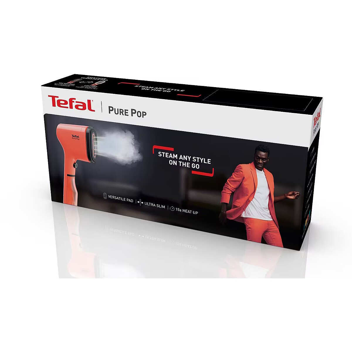 ShortSummaryDescription - "Tefal Pure Pop" DT2022, Rankinis drabužių garintuvas, 0,07 l, 0,25 min, Koralinis, Mygtukai, Rankinis jungiklis