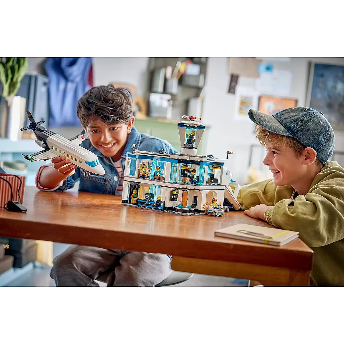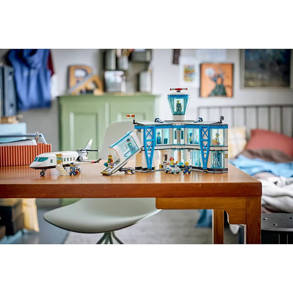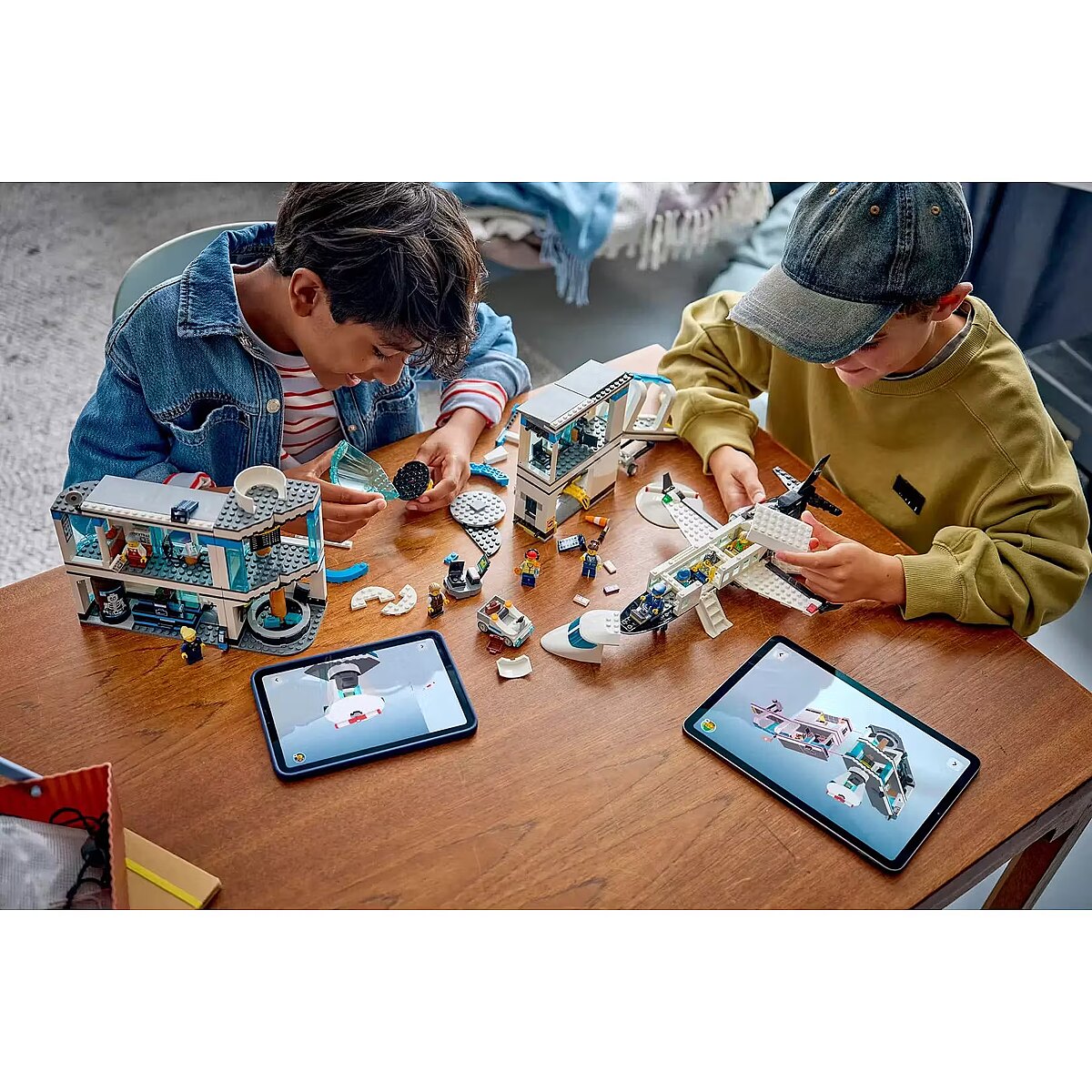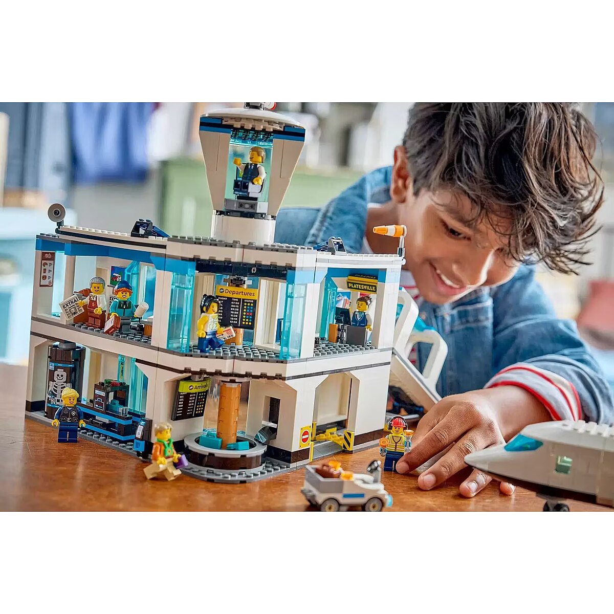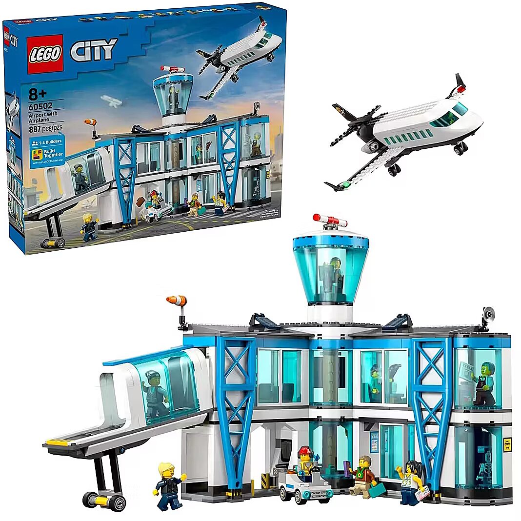 Description - Blocks City 60502 Airport with Airplane The LEGO City Airport with Airplane set for children aged eight and up will take playtime to new heights. This detailed airport model is packed with features that encourage role-play. Kids can send luggage through the scanner, rotate the metal detector gate to reveal the skeleton shown on the X-ray image, and change the departure board to select one of four destinations. The set also includes a cool passenger airplane with a detailed cabin and fold-down stairs, as well as an airport tug and a passenger boarding bridge. Just add nine minifigures to enjoy many hours of creative play. This airport toy is a great gift idea for boys, girls, and anyone who loves airplane models and LEGO construction sets. The set can be combined with other LEGO City sets (sold separately) to create even more adventures. You can also team up with friends and family using the Build Together mode in the LEGO Builder app, where everyone can have fun building part of the set on their own device. The set consists of 887 pieces.