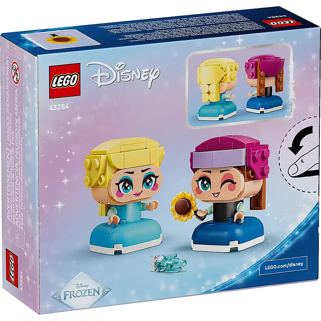 Description - Blocks Disney 43284 Mini Anna and Elsa Give kids aged five and up the LEGO Disney Frozen Baby Anna and Elsa (43284) set. Baby Anna and Elsa from the movie are designed to spark imaginations and encourage play, and the included ice arrow and sunflower accessory elements add to the fun. Each character has posable arms and can hold accessories. They also make great display pieces and are part of a larger collectible series featuring other Disney Princesses.