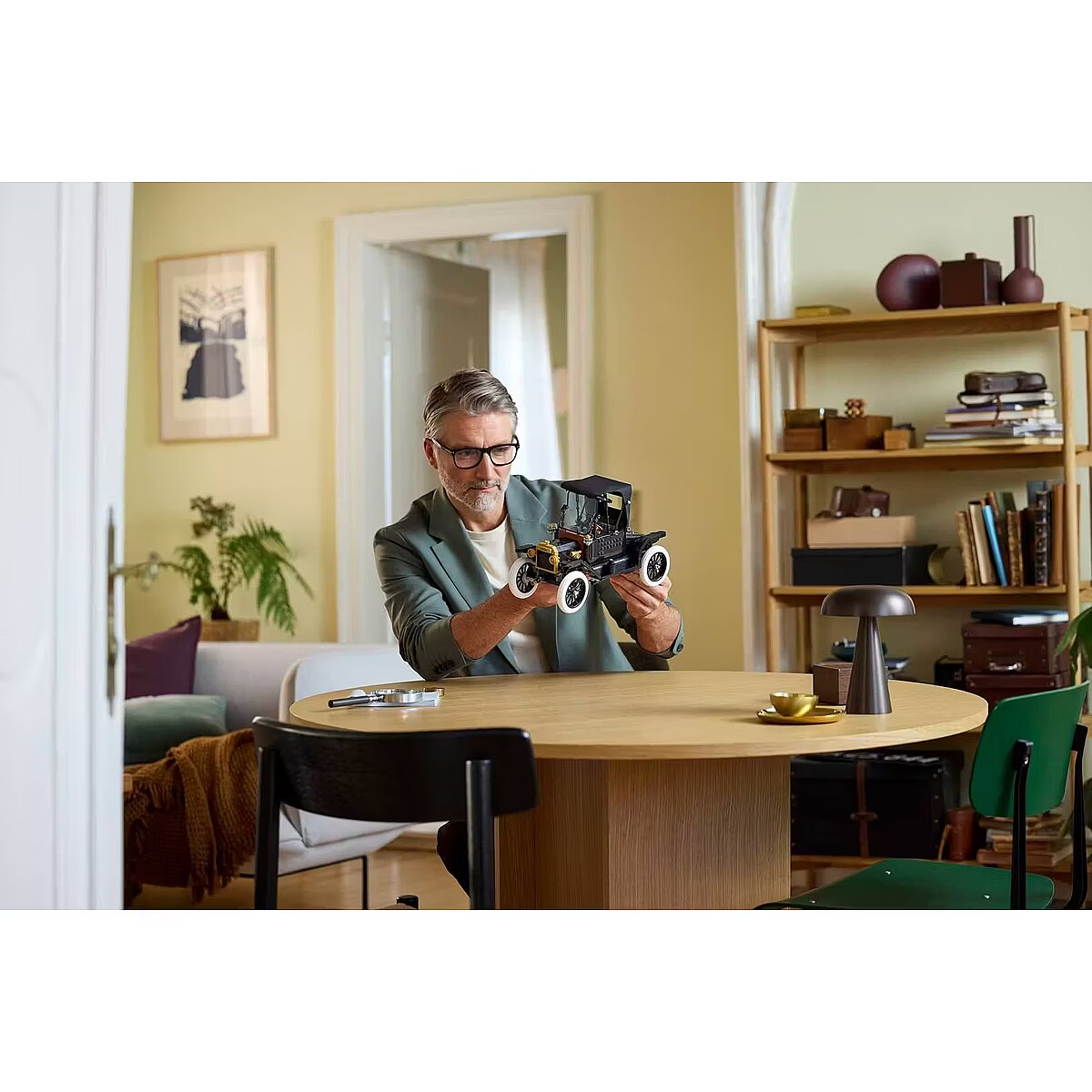 Aprašymas - „Ford Model T“ – paminėkite automobilių istorijos ikoną su suaugusiems skirtu „LEGO Icons“ automobilių modelių rinkiniu „Ford Model T“ (11376). Ši autentiška 1910-ųjų automobilių kopija turi atlenkiamą audinio stogą, nuleidžiamą dviejų dalių priekinį stiklą ir vieną atidaromą keleivio durų pusę. Tarp kitų detalių – atidaromas bagažinės dangtis ir itin detalizuota vairuotojo kabina su veikiančiu vairo mechanizmu. Pakelkite sėdynę, kad pasiektumėte degalų baką. Pakelkite variklio dangčio skydelius iš abiejų pusių, kad pamatytumėte variklį, ir pasukite rankenėlę, kad sukasi ventiliatorius. Šis senovinio automobilio dekoratyvinis modelis, pagamintas su juodu kėbulu, auksiniais akcentais ir aukštais stipininių ratlankių ratlankiais su plonais baltais gumos padangomis, yra elegantiška ekspozicija namuose ar biure. Šis aukščiausios kokybės modelis yra puiki dovana klasikinio amerikietiško automobilio mėgėjams. Atraskite įkvepiančią kūrybinių „LEGO“ projektų (parduodamų atskirai) seriją, sukurtą specialiai suaugusiems. Statykite protingiau su „LEGO Builder“ programa – didinkite, sukite 3D, stebėkite pažangą ir sekite žingsnis po žingsnio pateiktas skaitmenines instrukcijas. Rinkinį sudaro 1 060 detalių. RETRO AUTOMOBILIO MODELIO RINKINYS 18+ METŲ AMŽIAUS ŽMONĖMS – Leiskitės į nostalgišką kelionę su „LEGO Icons“ „Ford Model T“ (11376), labai detalus automobilių modelio rinkinys suaugusiems RETRO AUTOMOBILIO MODELIS - Atkurkite legendinį 1910-ųjų automobilį su blizgančiu juodu kėbulu, auksiniais akcentais, atlenkiamu audiniu stogu ir aukštais stipiniais ratlankiais su plonais baltais gumos ratais. „FORD MODEL T“ FUNKCIJOS – Atlenkite stogą ir nuleiskite padalintą priekinį stiklą, pakelkite variklio dangtį iš abiejų pusių, kad pamatytumėte variklį, pasukite rankenėlę, kad sukasi ventiliatorius, ir pakelkite sėdynę, kad pasiektumėte degalų baką. KLASIKINIS EKSPONATAS - Šis senovinio automobilio eksponatas taps elegantišku namų ar biuro akcentu. PUIKI DOVANA AUTOMOBILIŲ MĖGĖJAMS - Švęskite gimtadienį, šventes ar bet kokią kitą ypatingą progą su šiuo senovinio automobilio konstravimo rinkiniu – puikia dovana klasikinio amerikietiško automobilio mėgėjams. 3D KONSTRIAVIMO INSTRUKCIJOS - Išnaudokite visas šio modelio galimybes naudodami „LEGO Builder“ programėlę, kurioje galite peržiūrėti modelį 3D formatu, stebėti savo pažangą ir tyrinėti kitus rinkinukus. KŪRYBINIAI PROJEKTAI SUAUGUSIEMS - Šis „LEGO Icons“ „Ford Model T“ rinkinukas yra dalis įkvepiančių kūrybinių „LEGO“ projektų (parduodamų atskirai), sukurtų specialiai suaugusiems. MATMENYS - Šio 1 060 dalių „LEGO Icons“ „Ford Model T“ konstravimo rinkinio modelis yra daugiau nei 20 cm aukščio, 29 cm ilgio ir 13 cm pločio