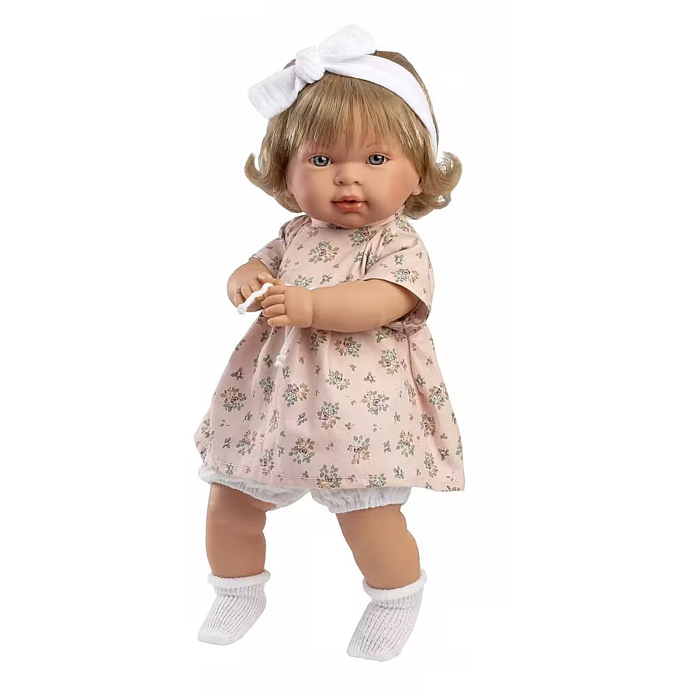 Description - Llorens 42164 Crying Doll 42 cm - Carla Handmade Llorens dolls are crafted with meticulous attention to detail. Delicately highlighted features, shading, beautiful eyelashes, and expressive eyes. Made from the highest quality materials, each doll comes to life and gains character in the hands of its creator. Their outfits are made from organic cotton, wool, and recycled materials. This makes it the perfect gift for your child, combining both educational and playful value. Handmade in Spain with love. Name: Carla Height: 42 cm Materials: Cotton body, vinyl arms, legs, and head Includes: Four-piece outfit and pacifier Features: Cries when pacifier is removed Batteries included: LR-44