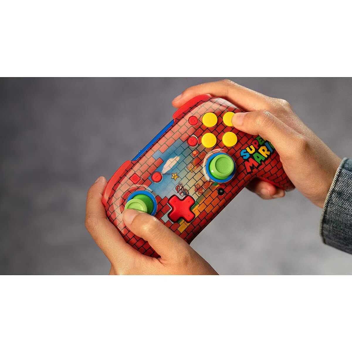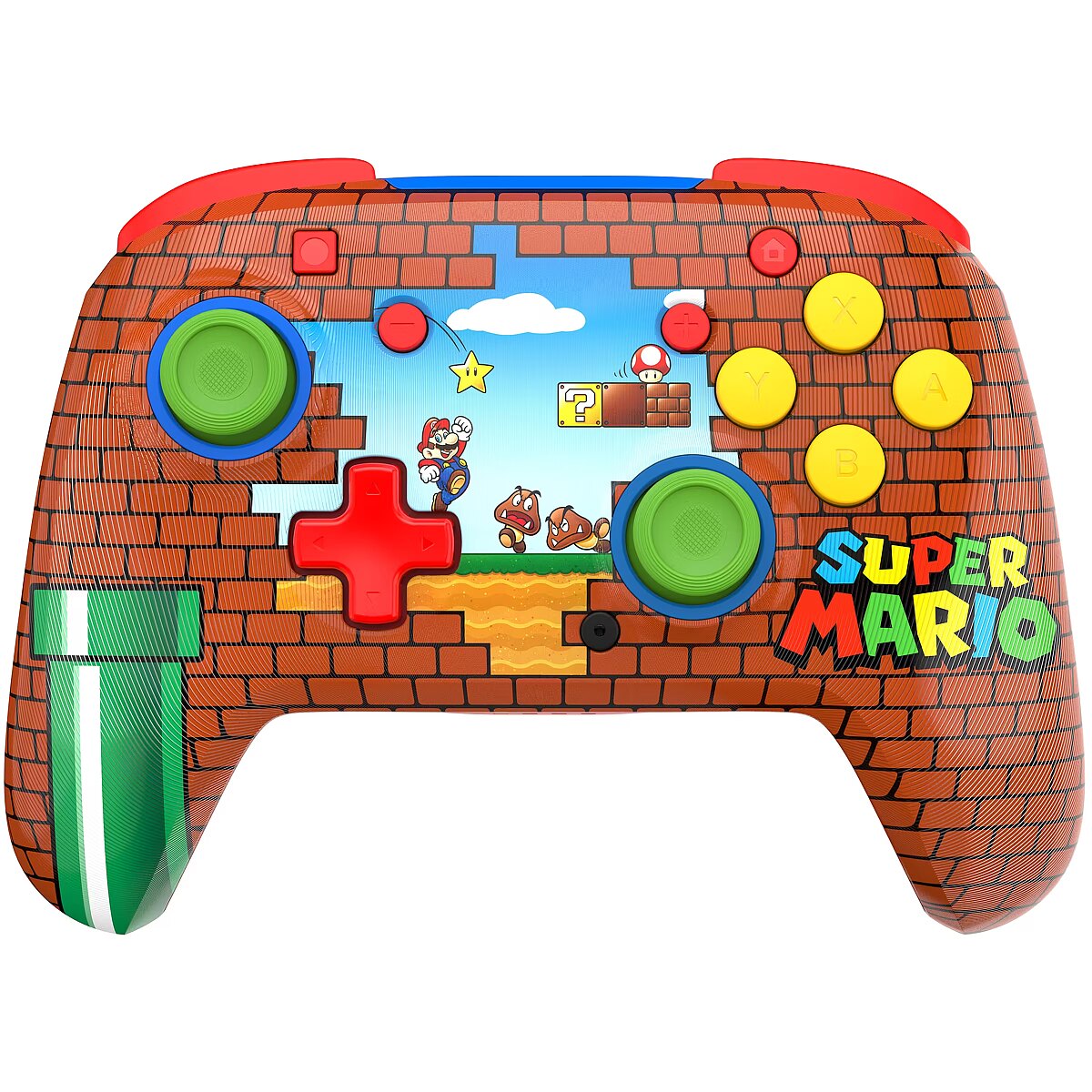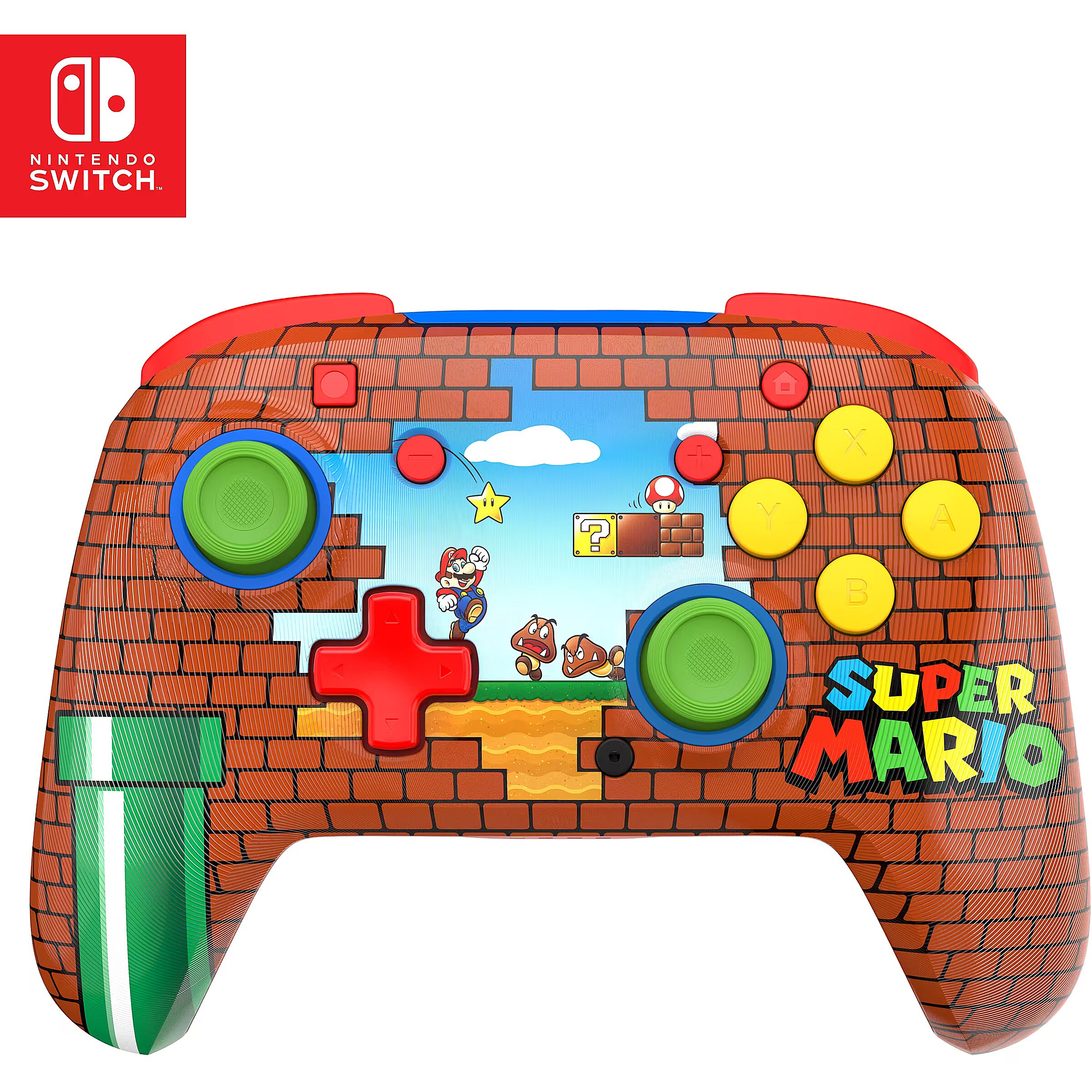 Tähista üht videomängumaailma ikoonilisemat kangelast julge kujundusega, mis on inspireeritud Super Mario™ maailmast. Klassikalised tellisemotiivid ja erksad värvid annavad sinu mänguseadmele silmapaistva ilme, rõõmustades nii pikaajalisi fänne kui ka uusi mängijaid. Juhtmevaba ja taaslaetav
